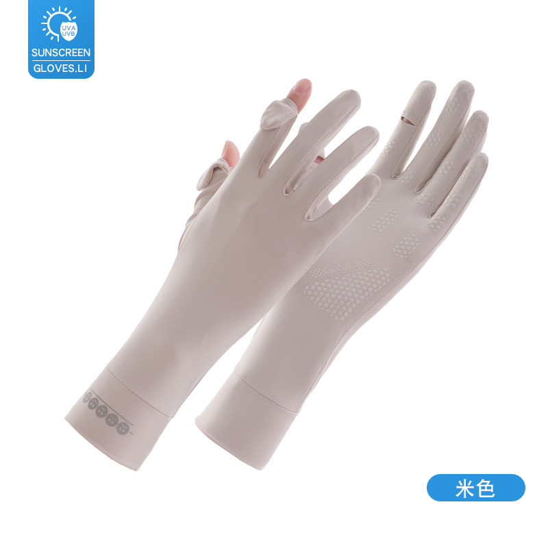 태양 보호 장갑 여성 여름 야외 스포츠 승마 시원한 얇은 미끄럼 방지 손가락 얼음 실크 장갑 UV 보호 F4