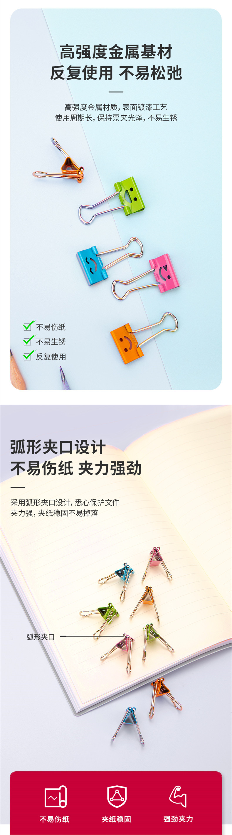 델리 8487 미소 긴 꼬리 티켓 홀더 배럴 5 # 창조적 인 귀여운 티켓 소지자 더브 테일 클립 폴더 19mm 피쉬 테일 클립 클립