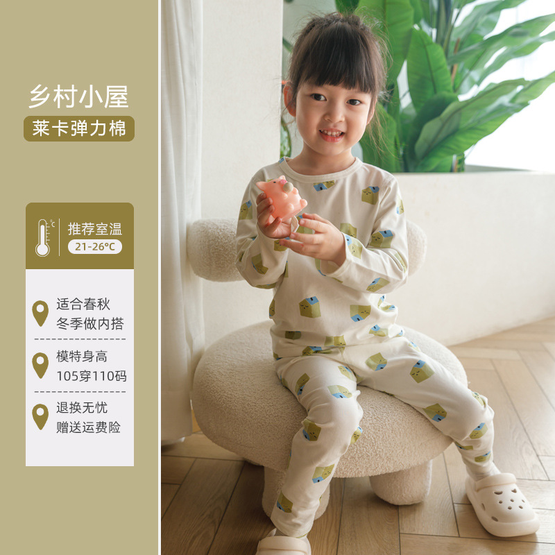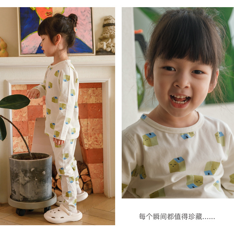 허시베이 어린이 속옷 세트 슬림 핏 라이크라 스트레치 코튼 염색 흰색 라운드 소매 청소년 속옷 홈웨어스토어 가기