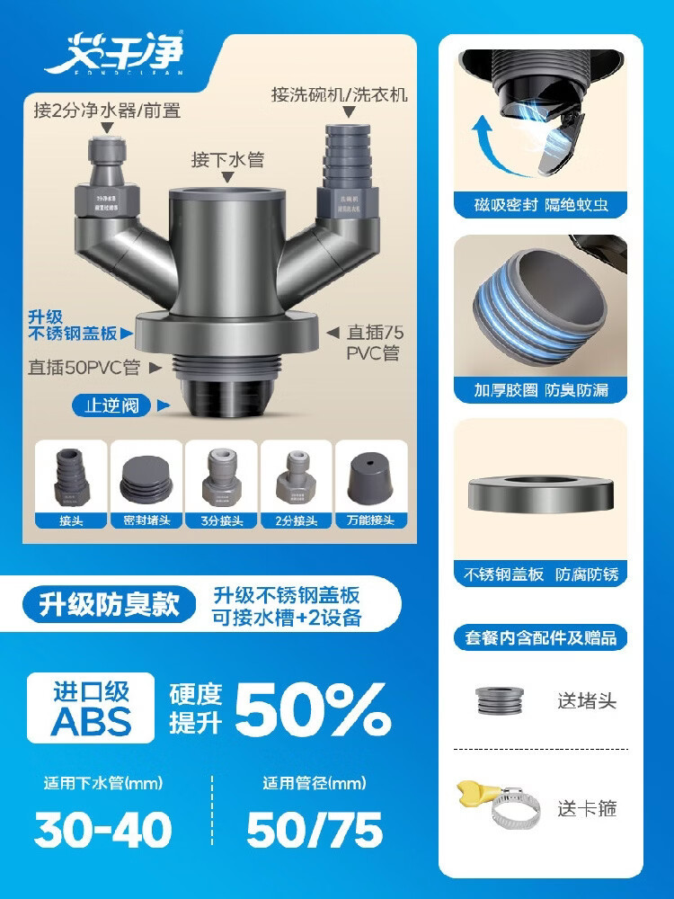 깨끗한 주방을 위한 하수관 3방향 분배기, 정수기, 식기세척기 세트, 냄새 방지 및 역류 방지스토어 가기