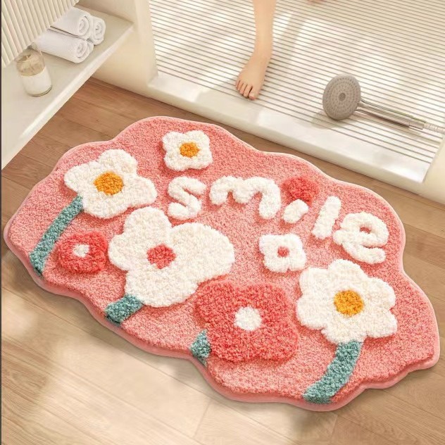 인 스타일 신선한 스타일 가정용 모조 캐시미어 바닥 매트 흡수성 매트 욕실 카펫 도어 매트 흡수성 비 슬립 바닥 매트스토어 가기