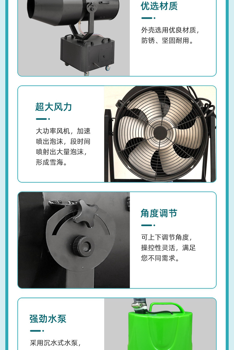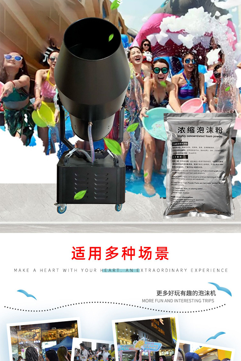 대형 거품 기계 유치원 무대 조명 워터 파크 파티 수영장 자동 흔들리는 헤드 제트 폼 기계스토어 가기