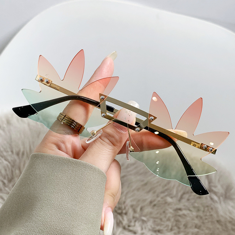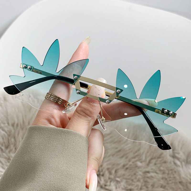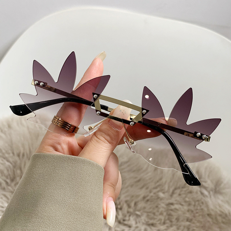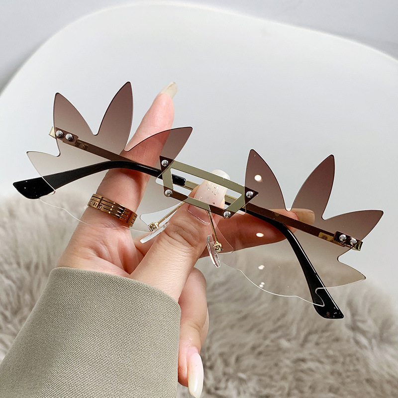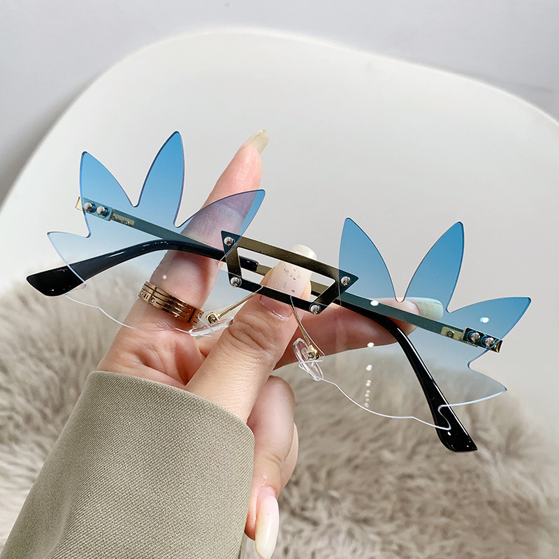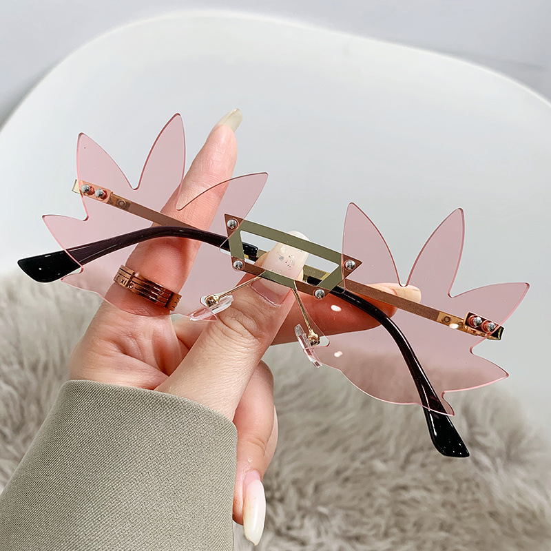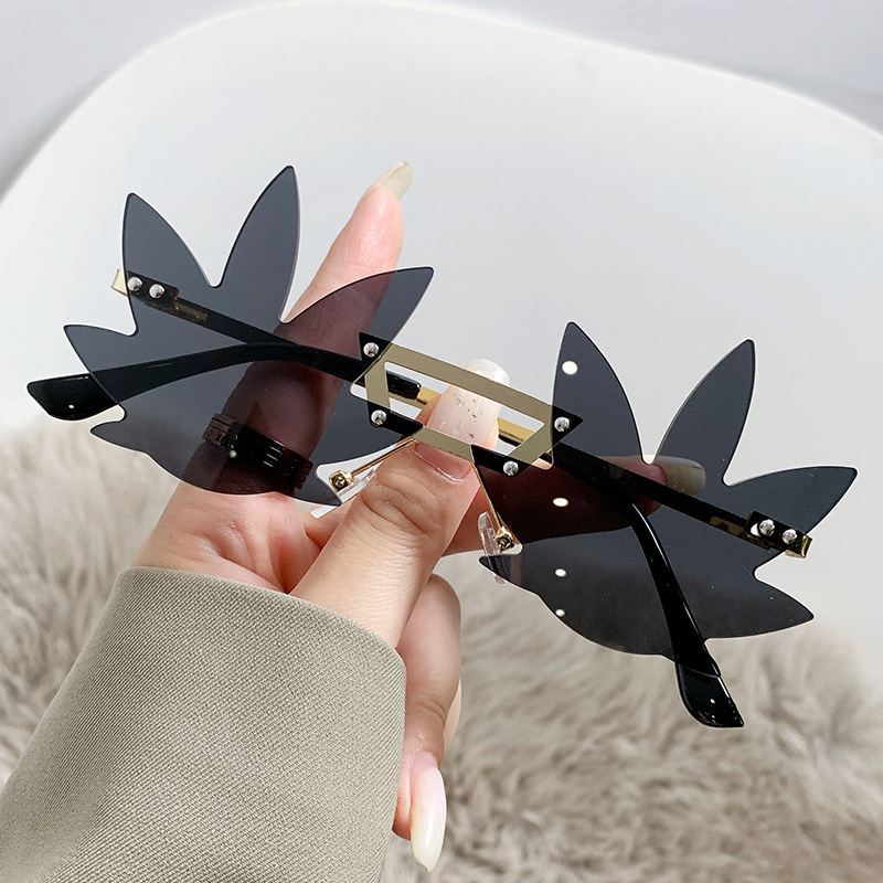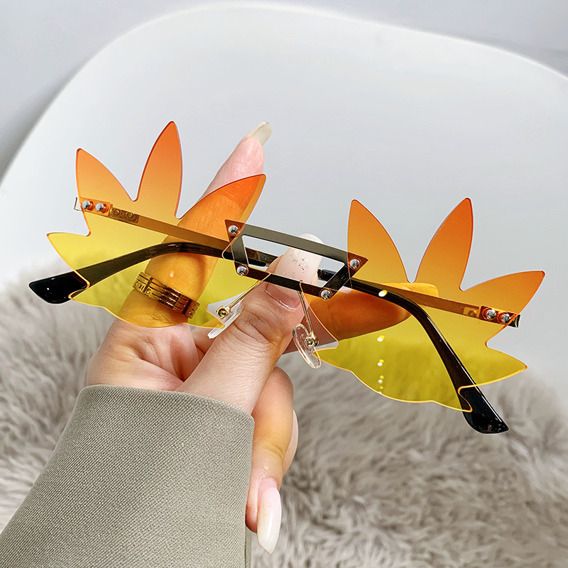 유럽과 미국의 2023 새로운 프레임없는 재미있는 선글라스 공 파티 패션 메이플 리프 선글라스 여성 국경 안경 패션