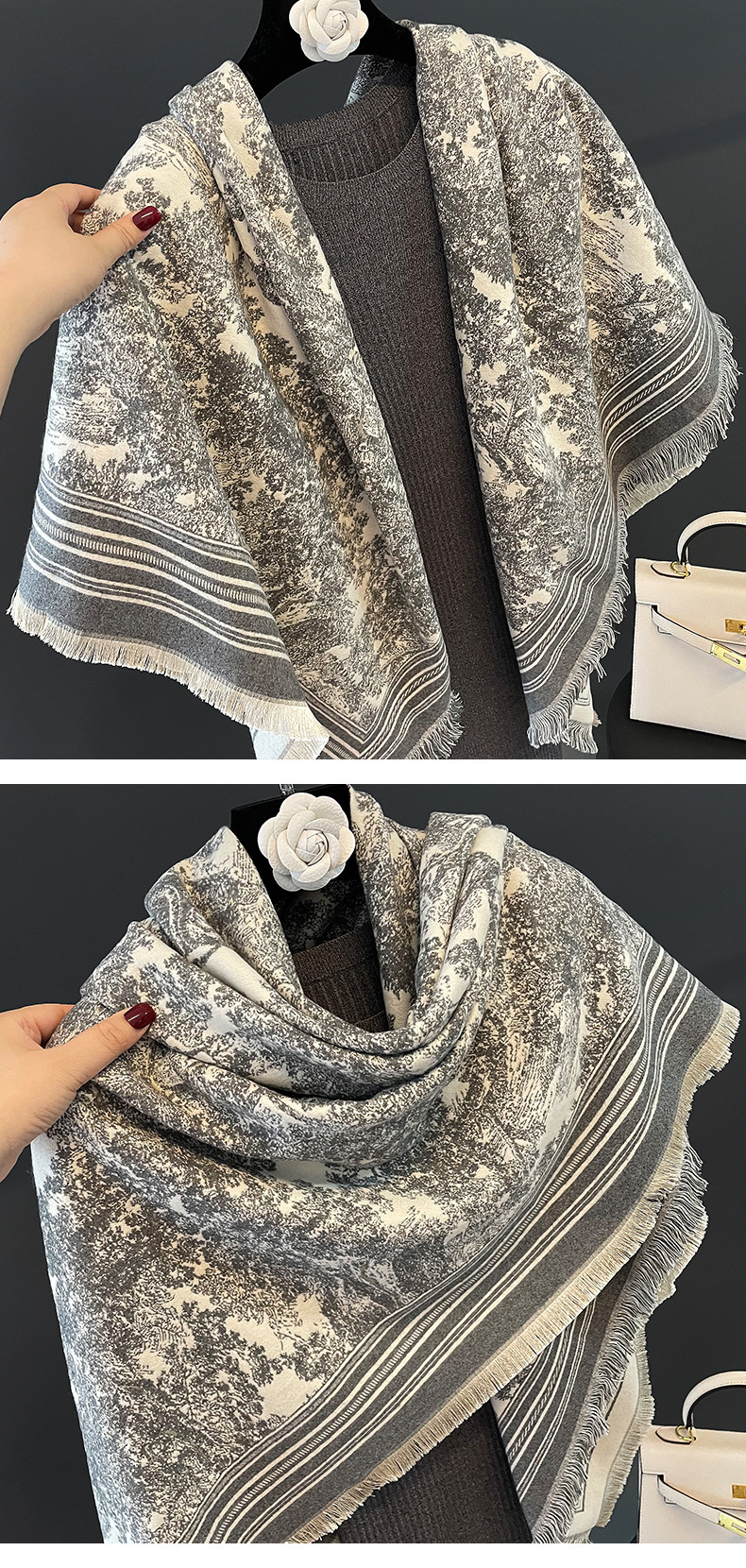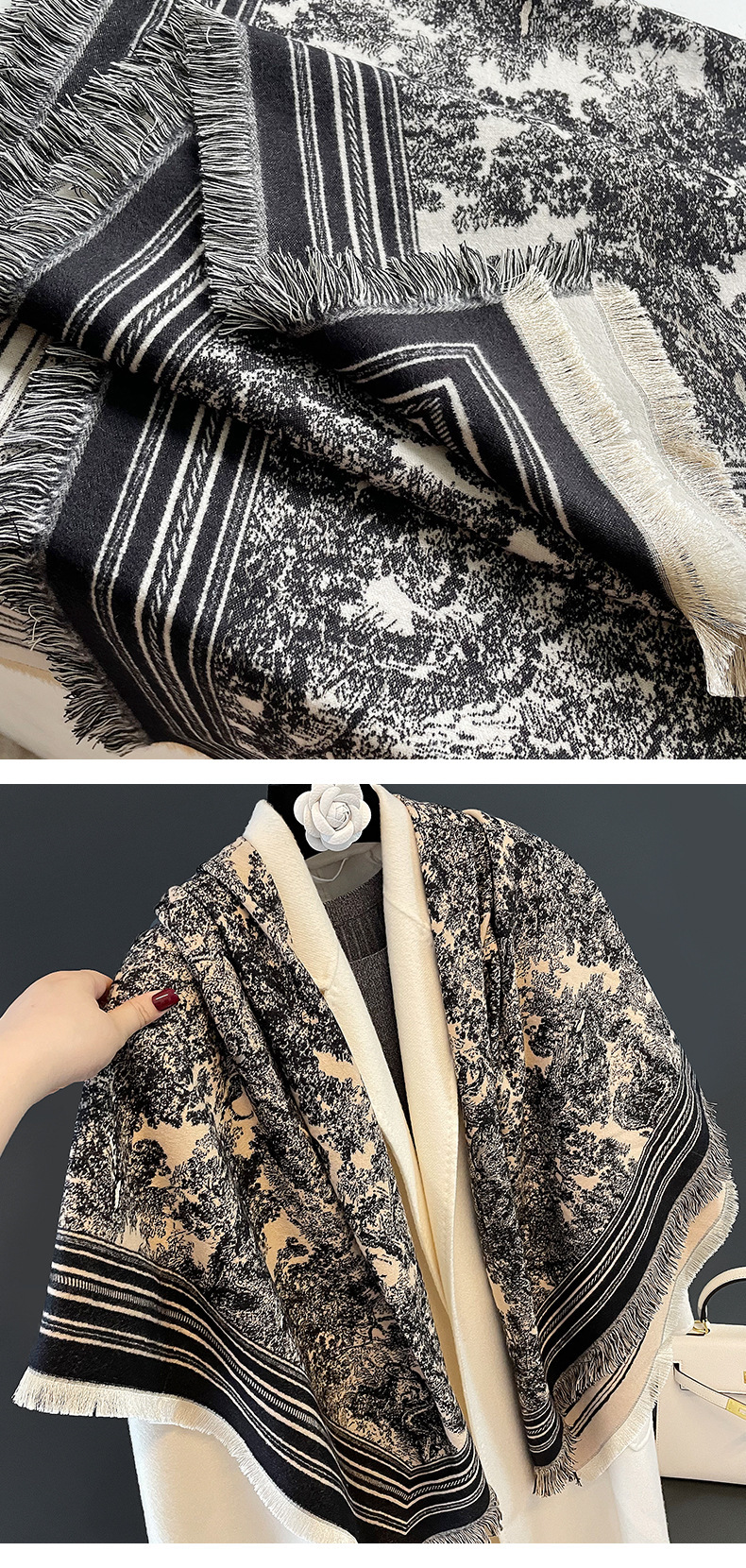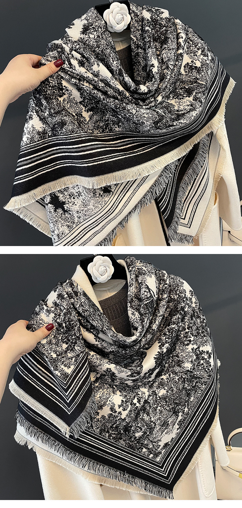 여름 새로운 에어컨 목도리 여성의 가을과 겨울 복고풍 따뜻한 스카프 높은 감각 술 외부 두꺼운 스카프 도매스토어 가기