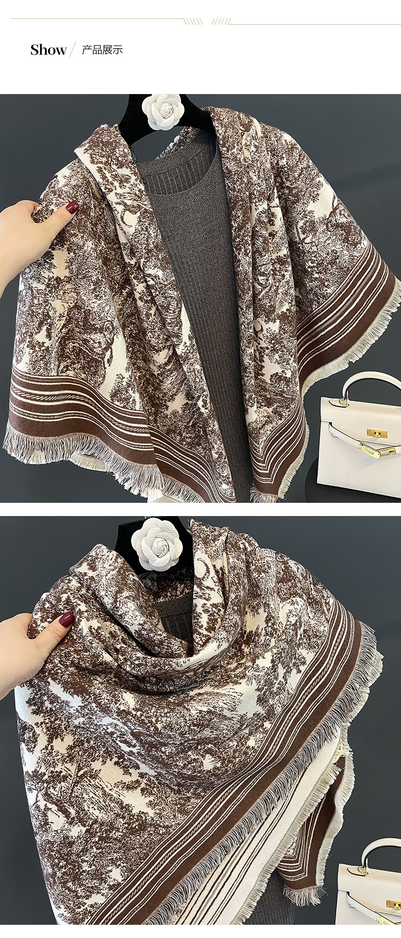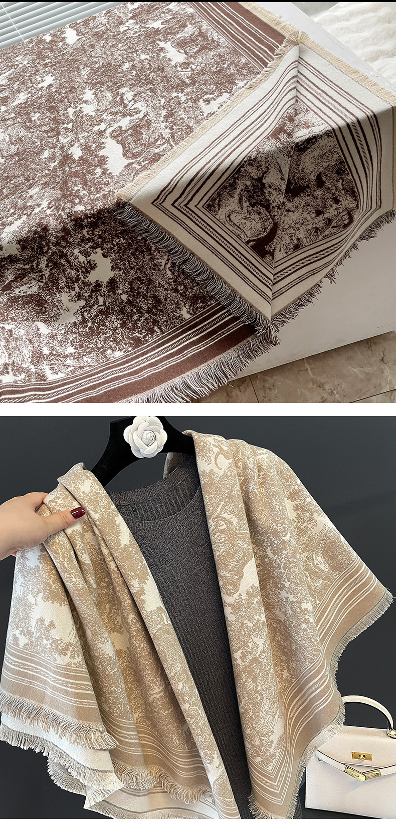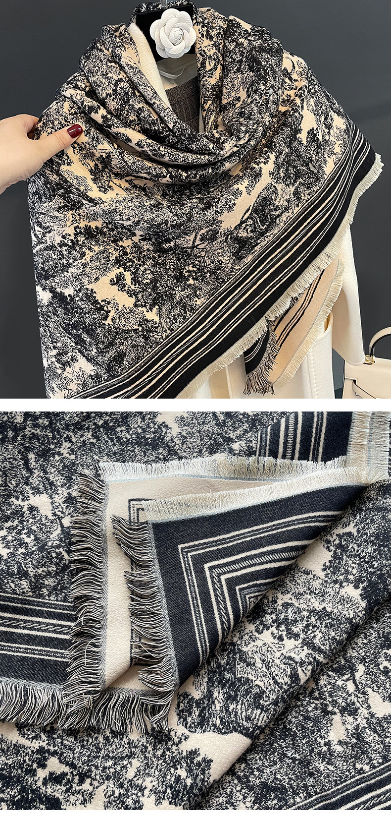 여름 새로운 에어컨 목도리 여성의 가을과 겨울 복고풍 따뜻한 스카프 높은 감각 술 외부 두꺼운 스카프 도매스토어 가기