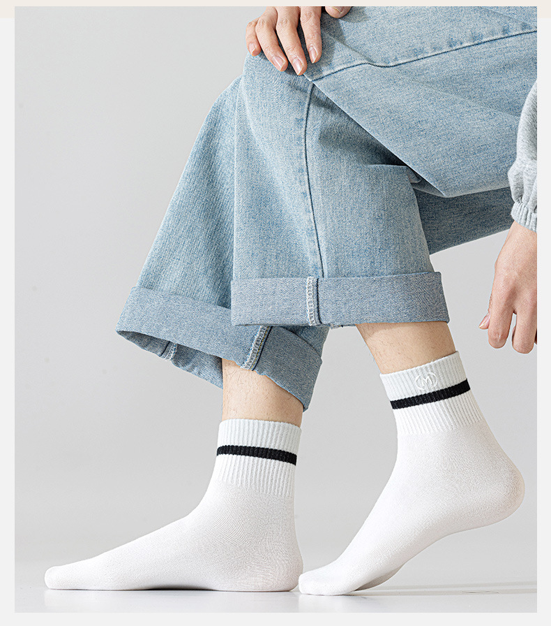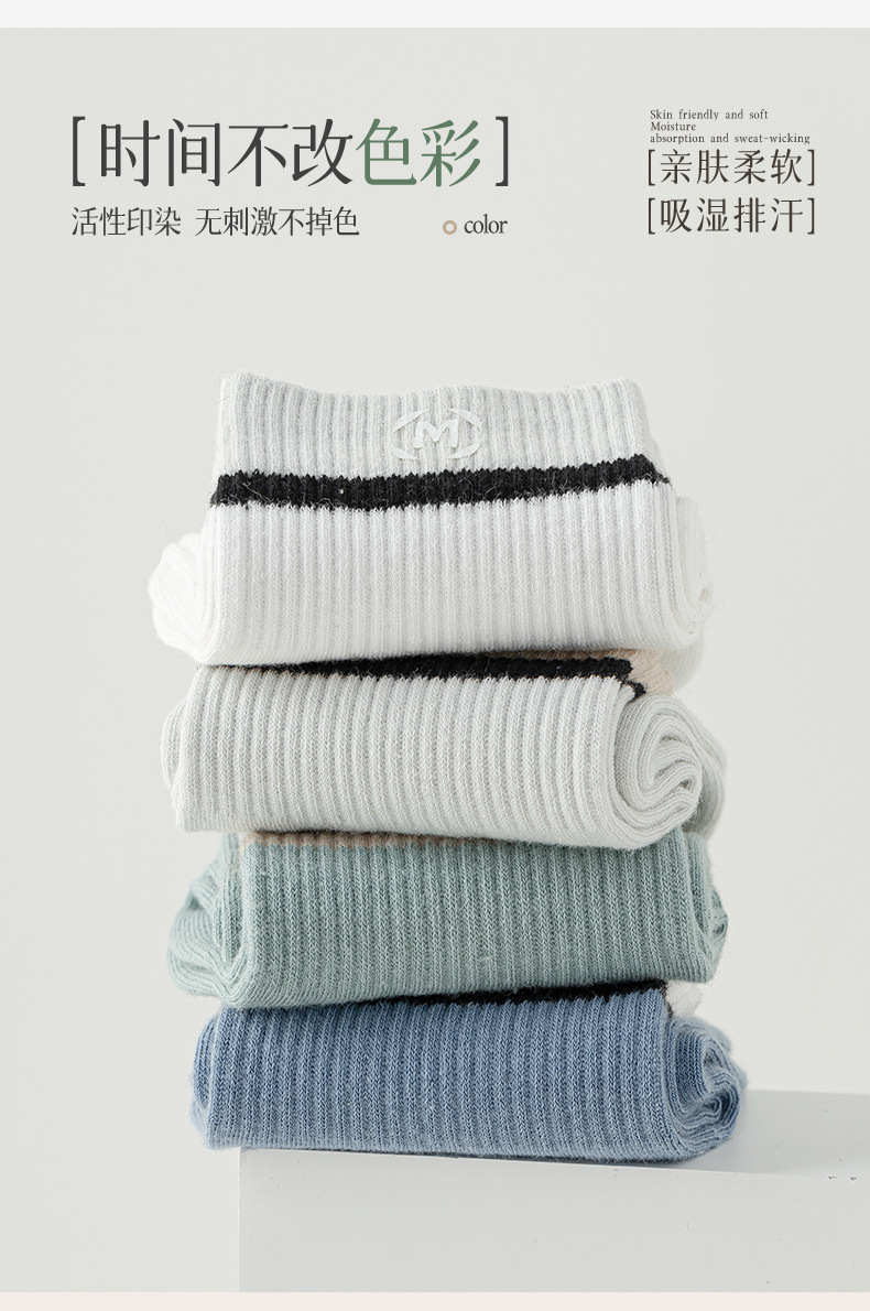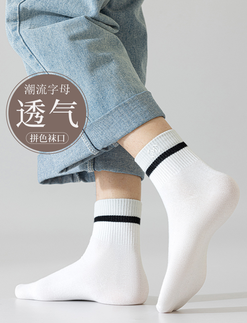 봄과 여름 새로운 줄무늬 양말 남성용 문자 중간 종아리 양말 편안한 통기성 스포츠 양말에 트렌디 한면 양말 Zhuji 양말스토어 가기