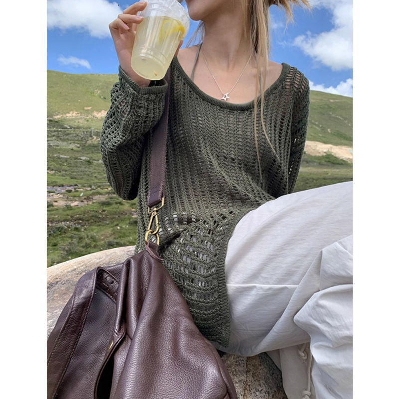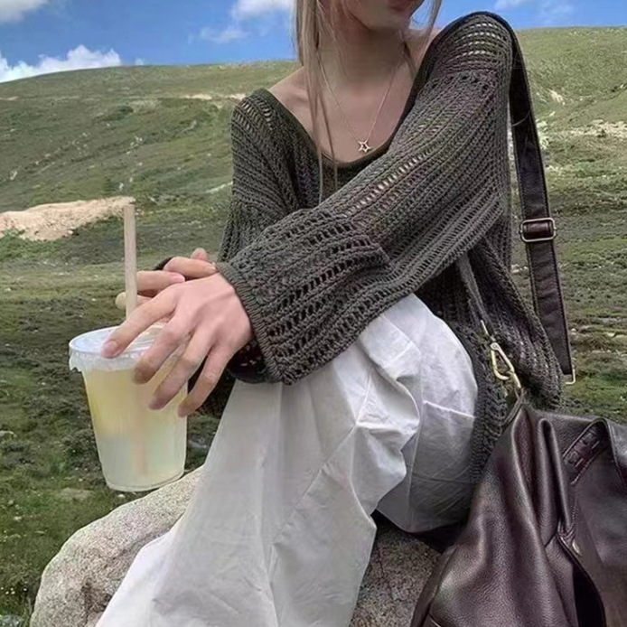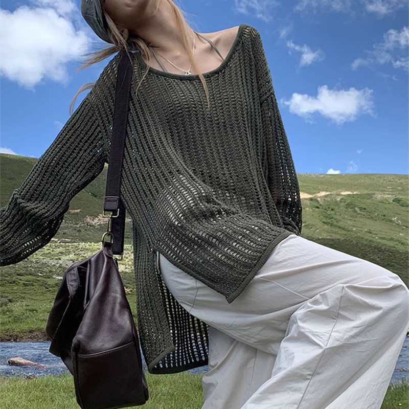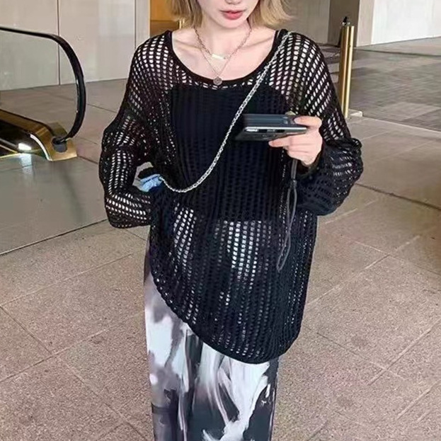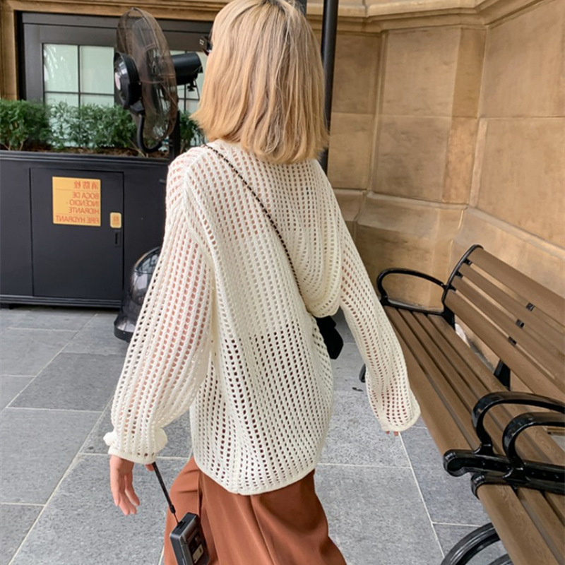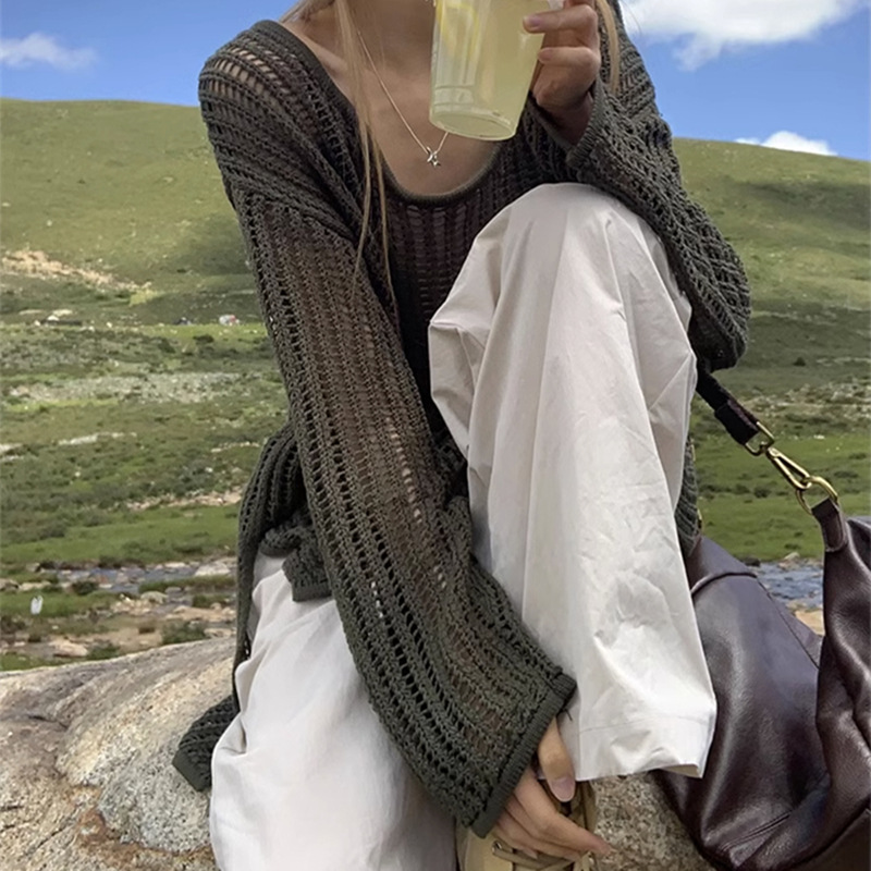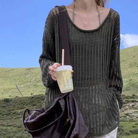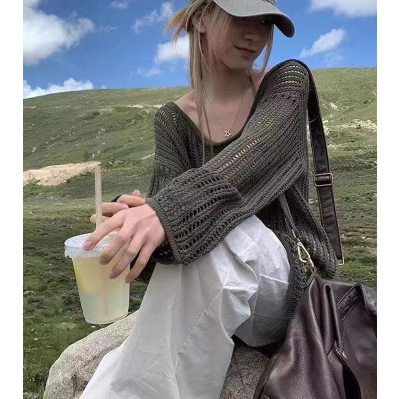 여성용 외부 블라우스 2025 봄 여름 얇은 긴 게으른 에어컨 셔츠 하이 엔드 탑 긴팔 중공 스웨터스토어 가기