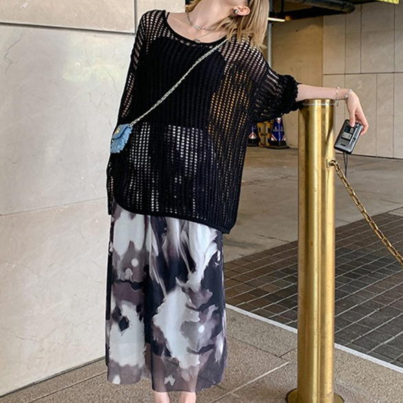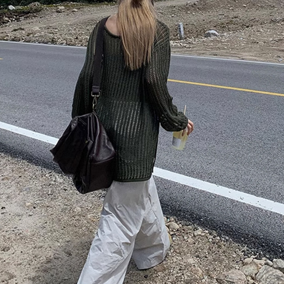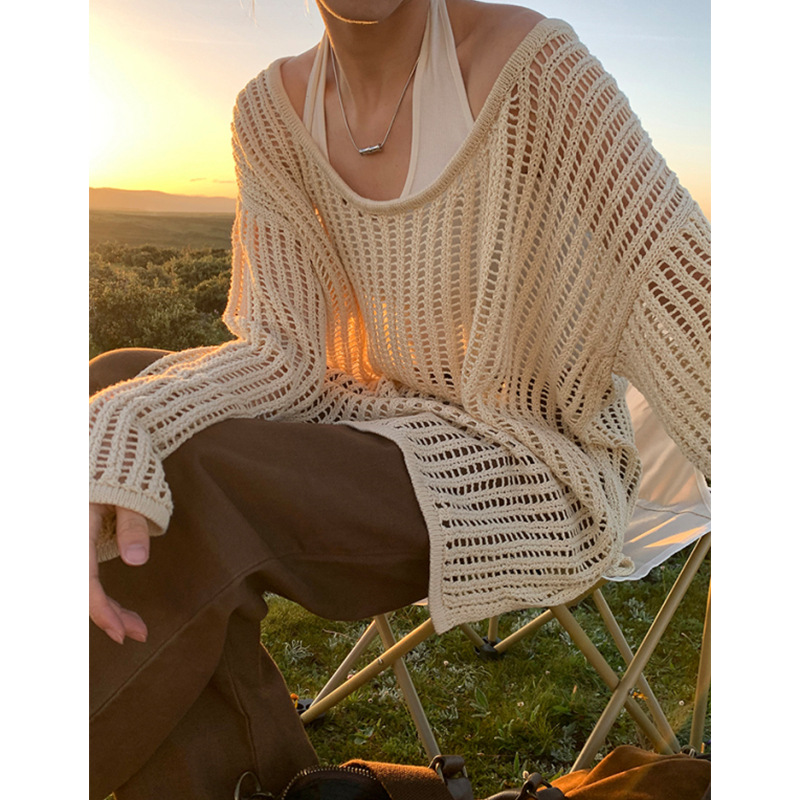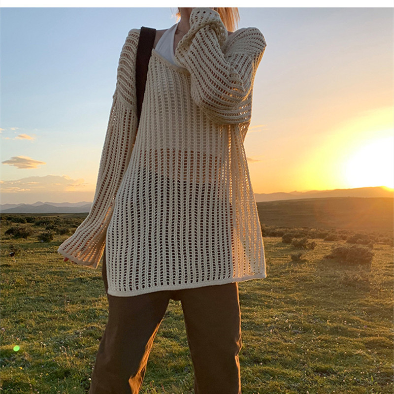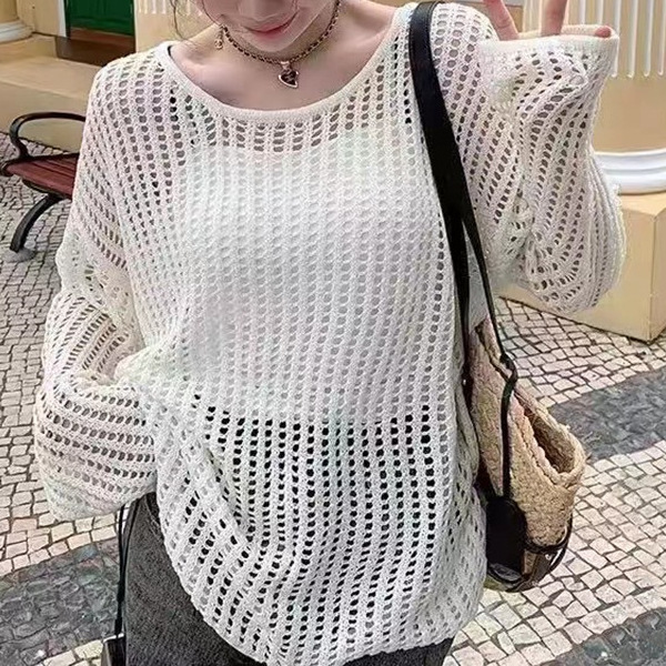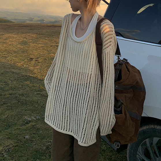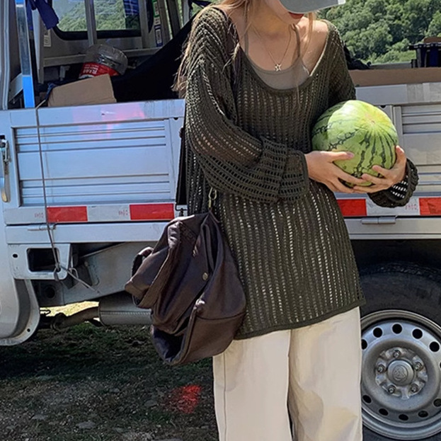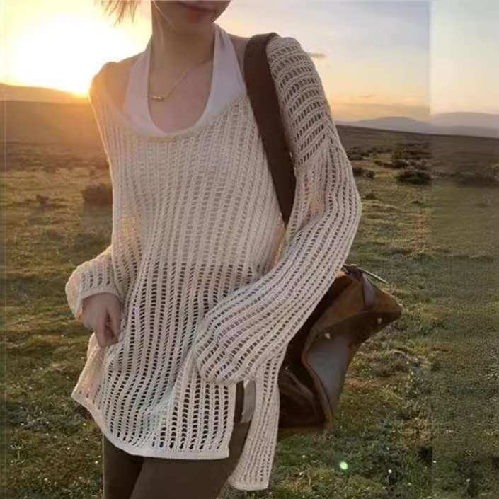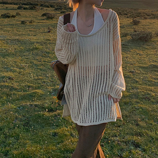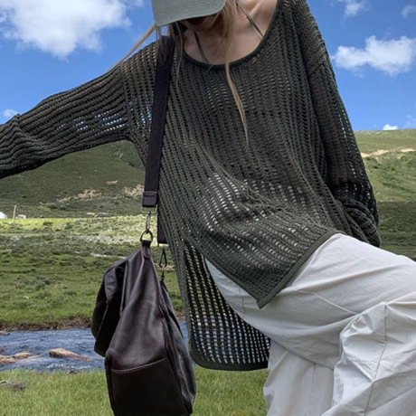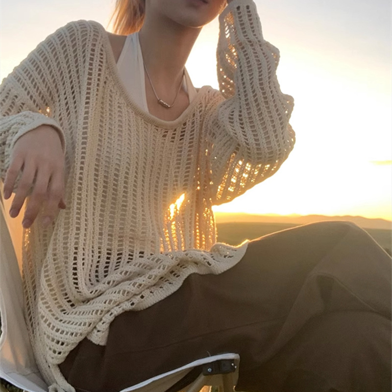 여성용 외부 블라우스 2025 봄 여름 얇은 긴 게으른 에어컨 셔츠 하이 엔드 탑 긴팔 중공 스웨터스토어 가기