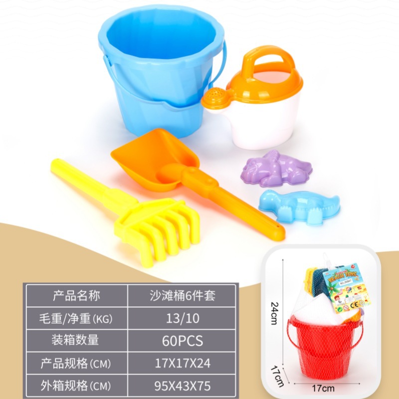 • 24cm 해변 양동이 6 조각 세트-임의의 색상 (메쉬 가방)