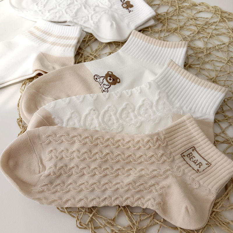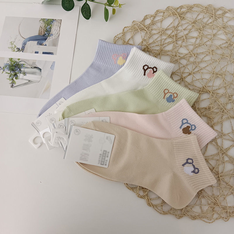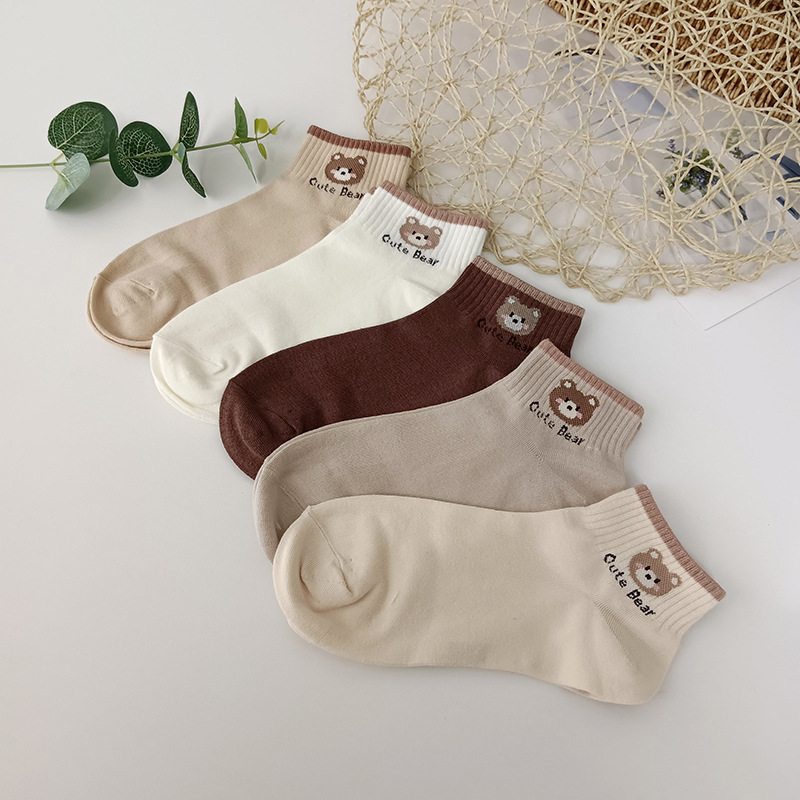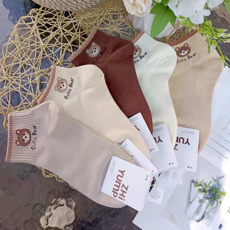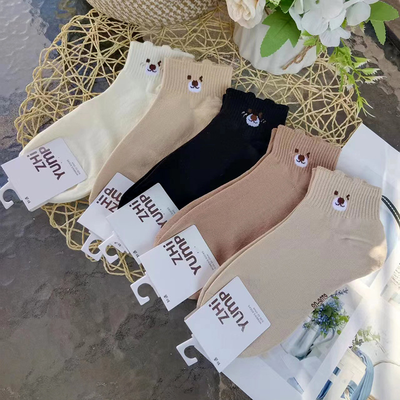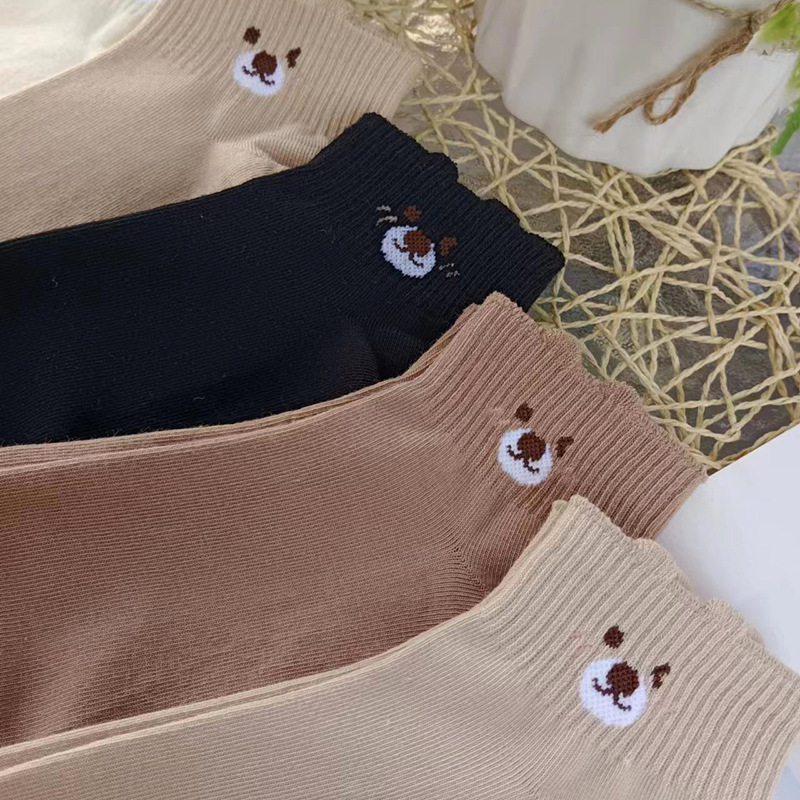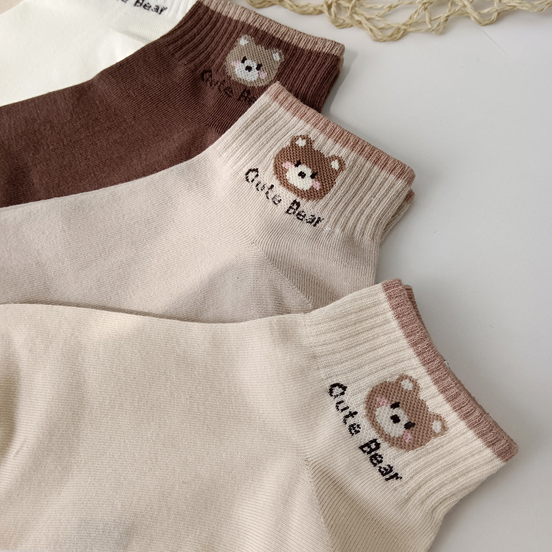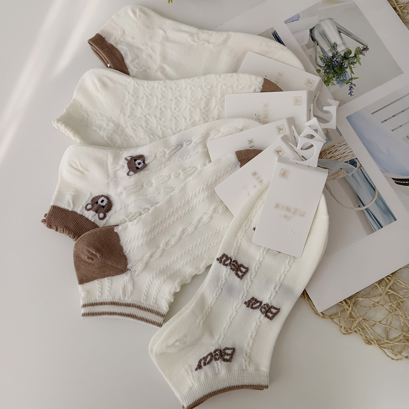 2024 새로운 양말 스포츠 보트 양말 곰 만화 자카드 양말 여성 인 유행 통기성 프레피 스타일면 양말스토어 가기