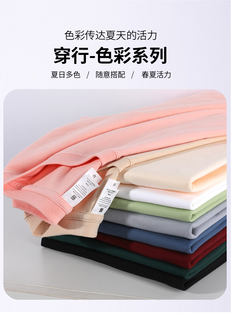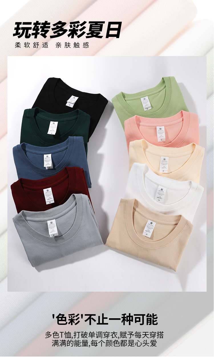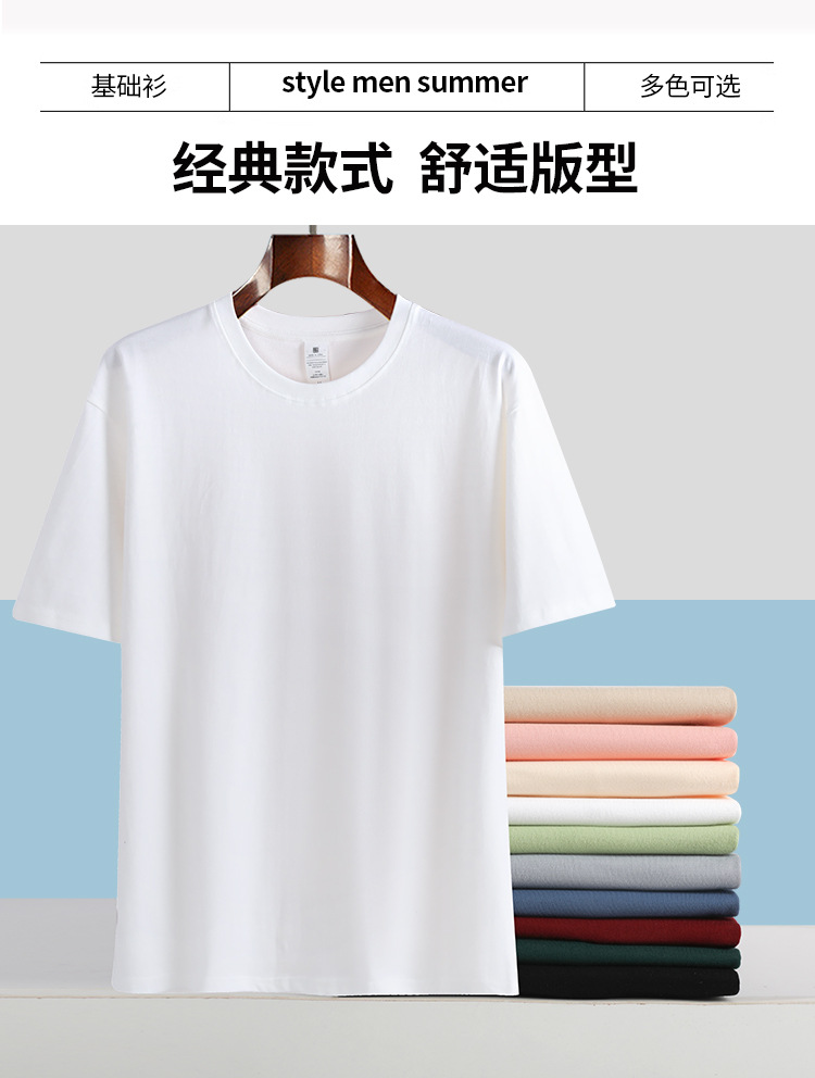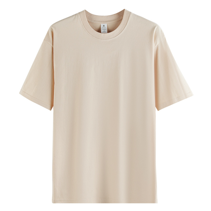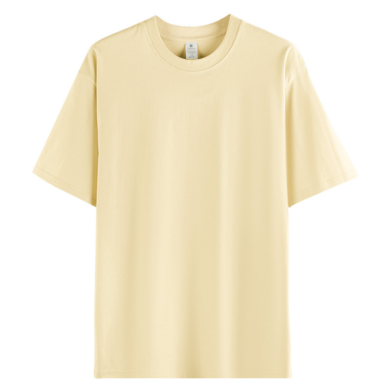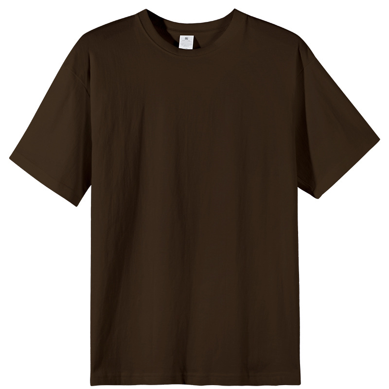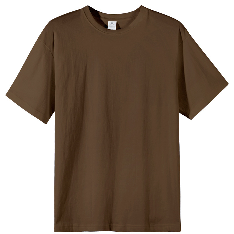 여름 230g 무거운 남성면 짧은 소매 느슨한 단색베이스 셔츠 Maillard 컬러 남성용 반소매 티셔츠스토어 가기