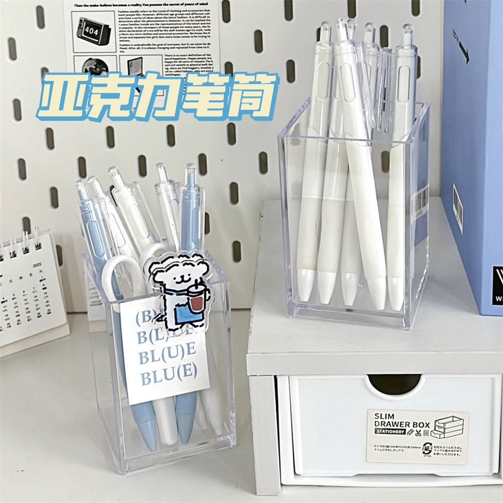 여성을위한 다기능 투명 아크릴 펜 홀더 간단한 고급 데스크탑 문구 잡화 저장 튜브 창조적 인 저장 상자스토어 가기