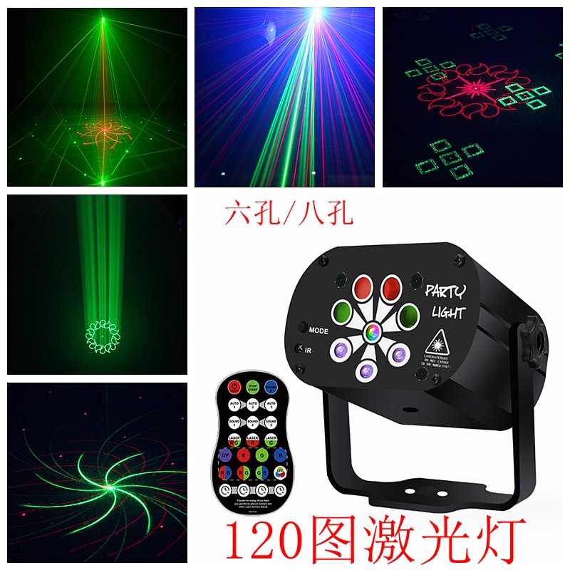 아름다운 chuangya 6 홀 8 홀 60 그림 120 그림 레이저 빛 LED 스트로브 빛 원격 제어 USB 컴퓨터 빛 KTV 빛