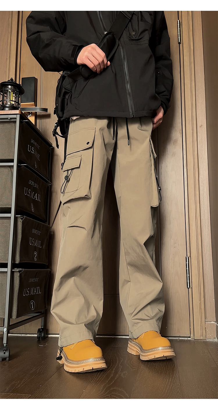 봄 멀티 포켓 바지 남성 캐주얼 바지 느슨한 패션 브랜드 등산 야외 바지 다용도 긴 바지