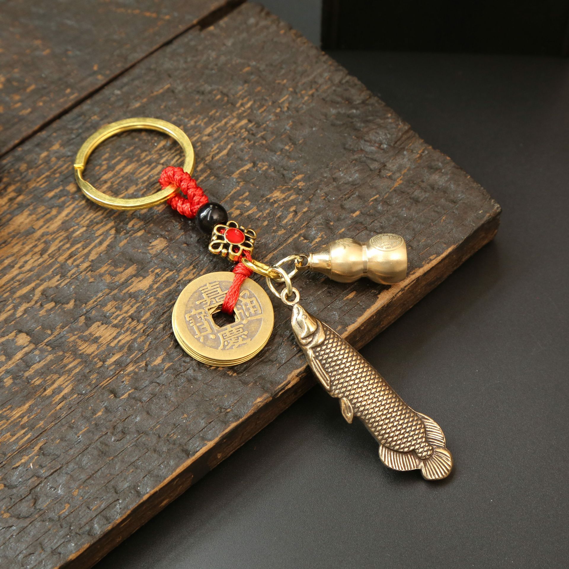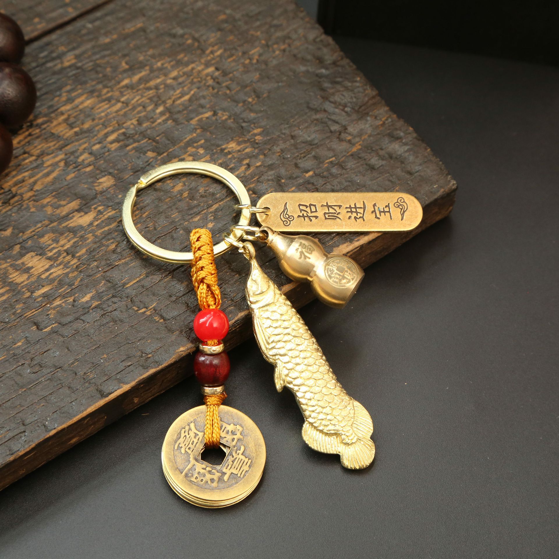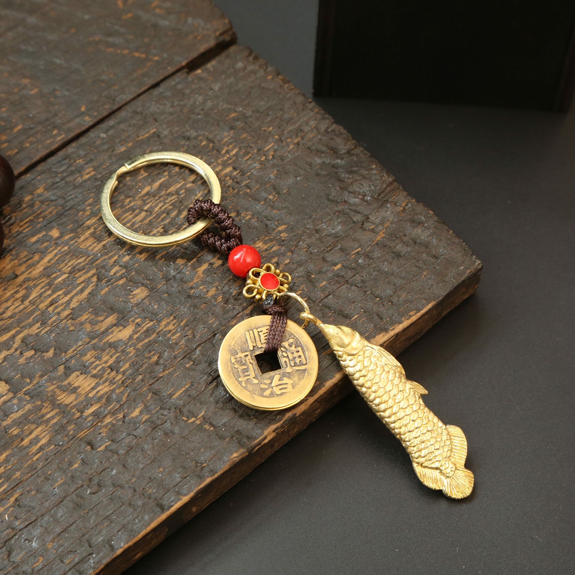 황동 황금 용 물고기 키 체인 펜던트 남녀 가방 자동차 키 펜던트 5 황제 돈 diy Knot스토어 가기