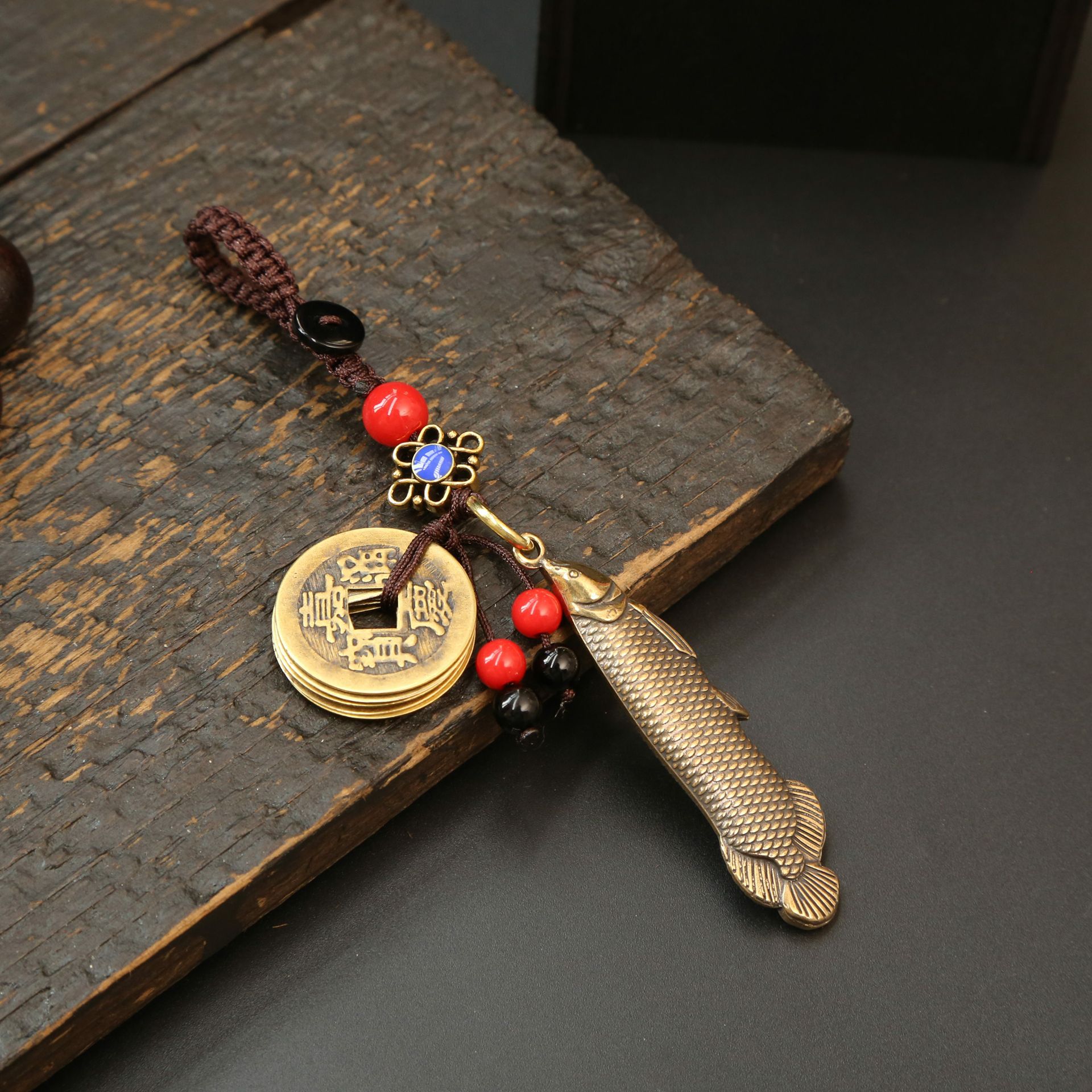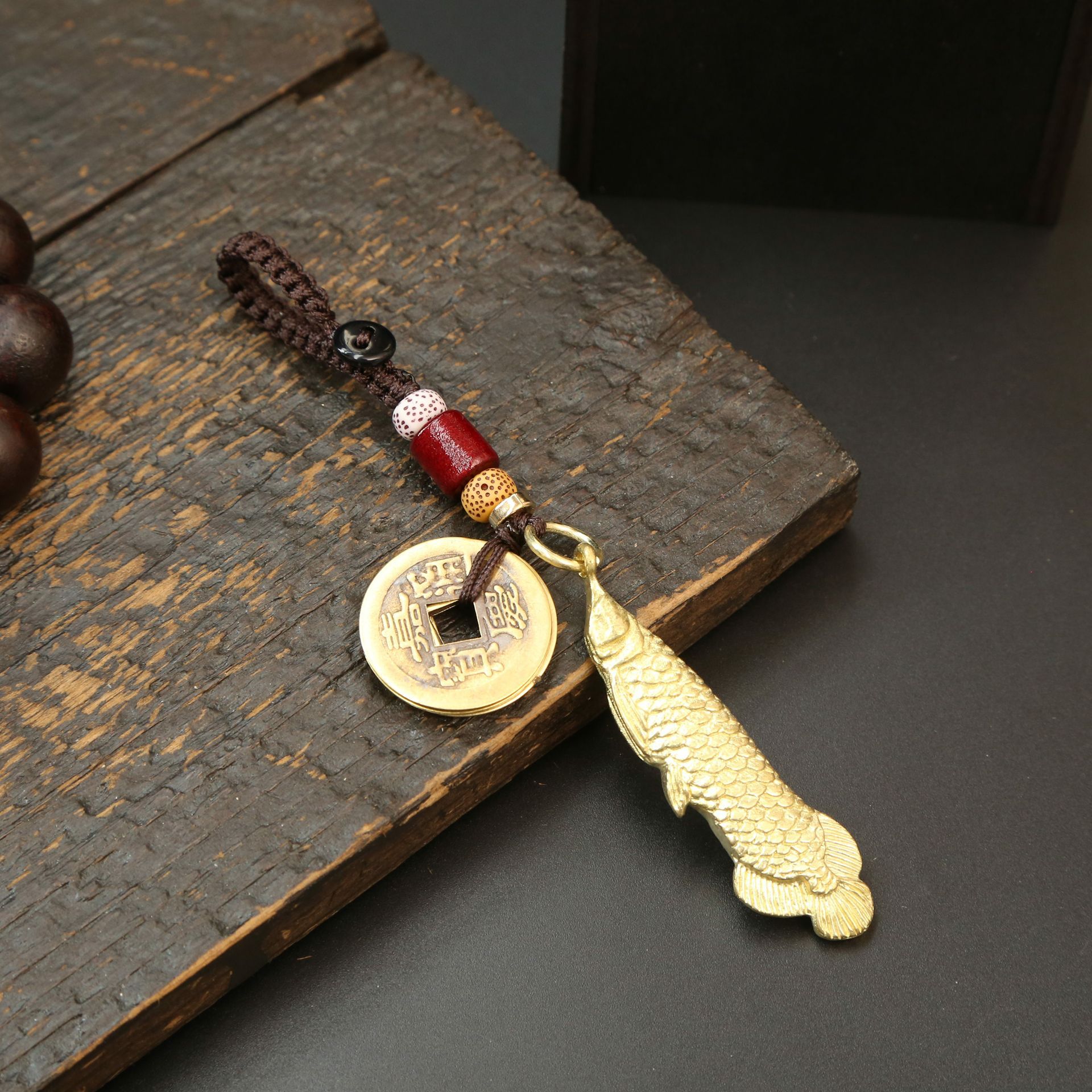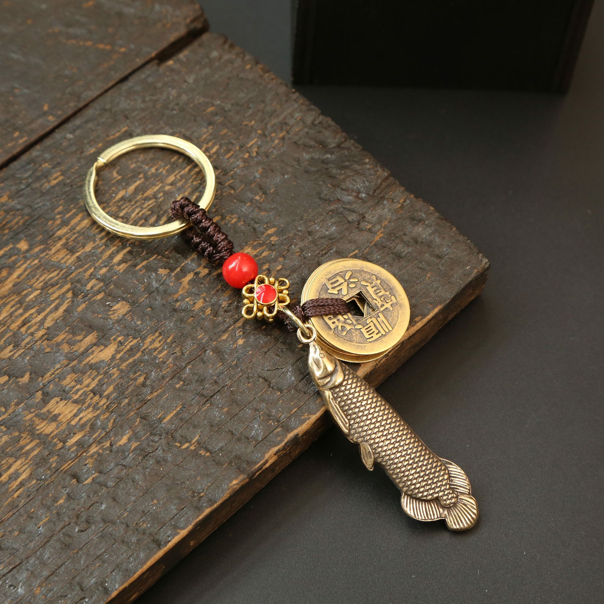 황동 황금 용 물고기 키 체인 펜던트 남녀 가방 자동차 키 펜던트 5 황제 돈 diy Knot