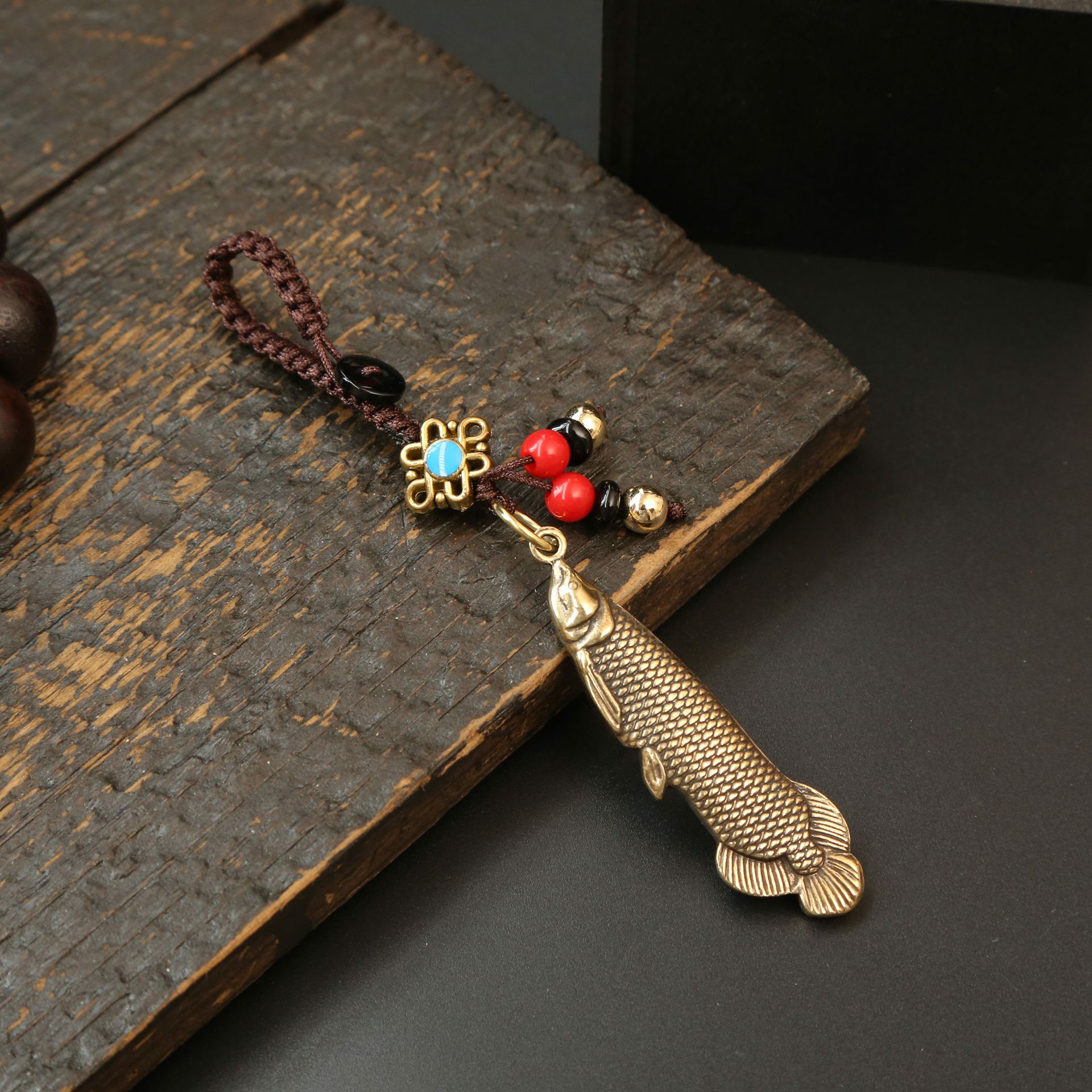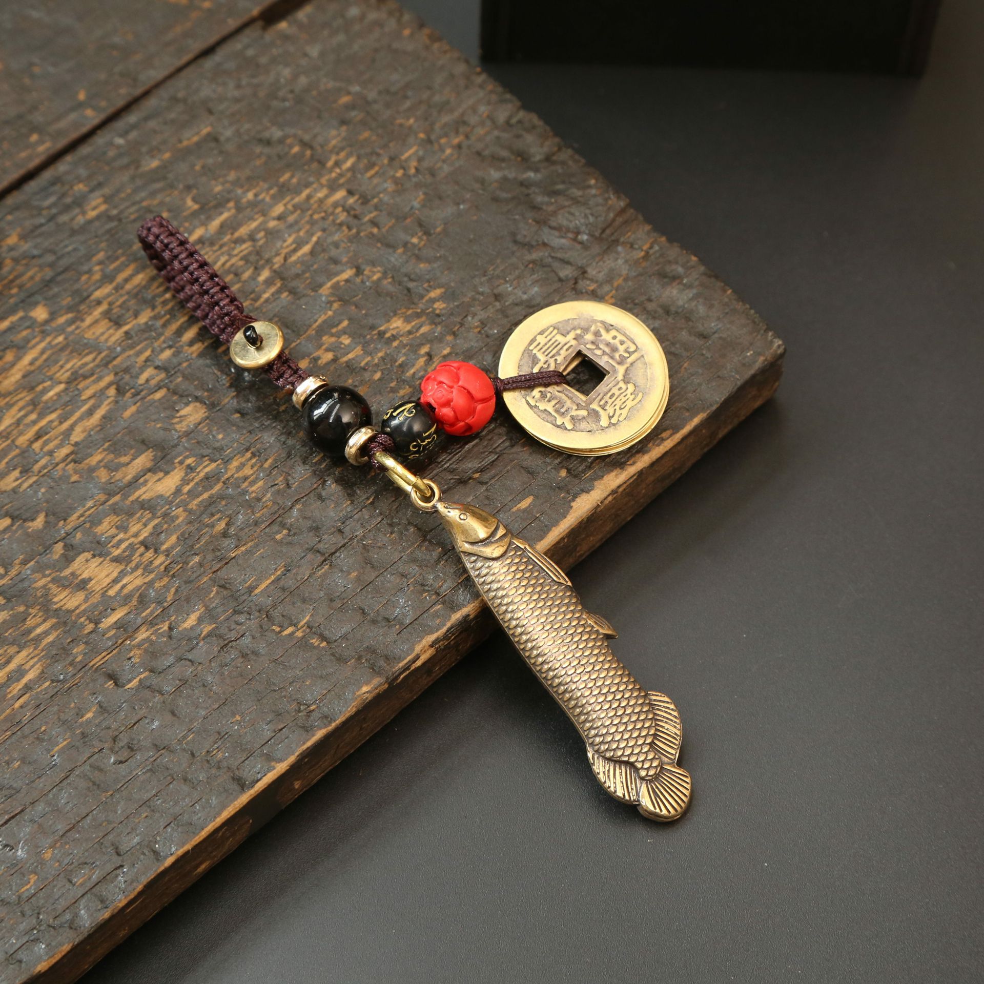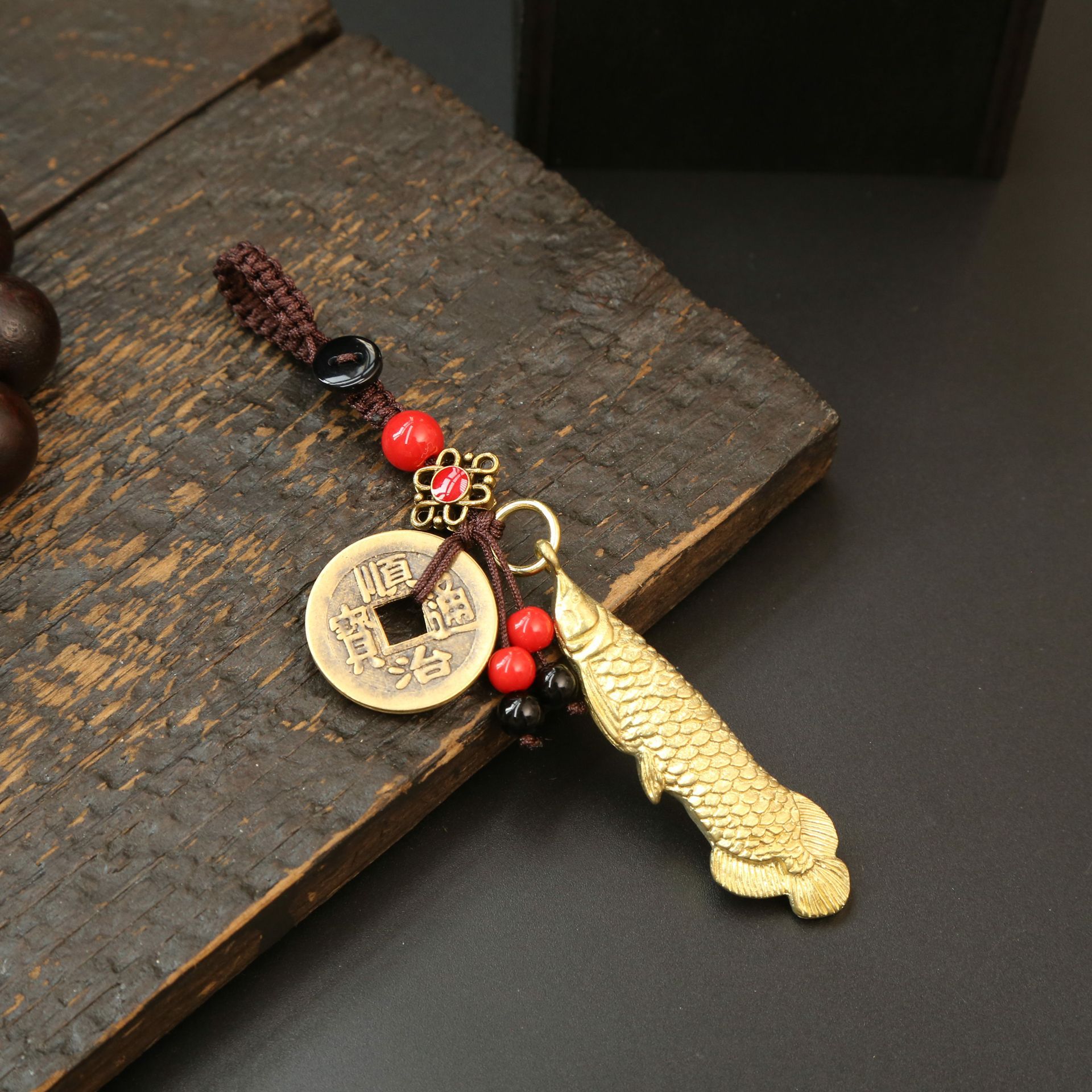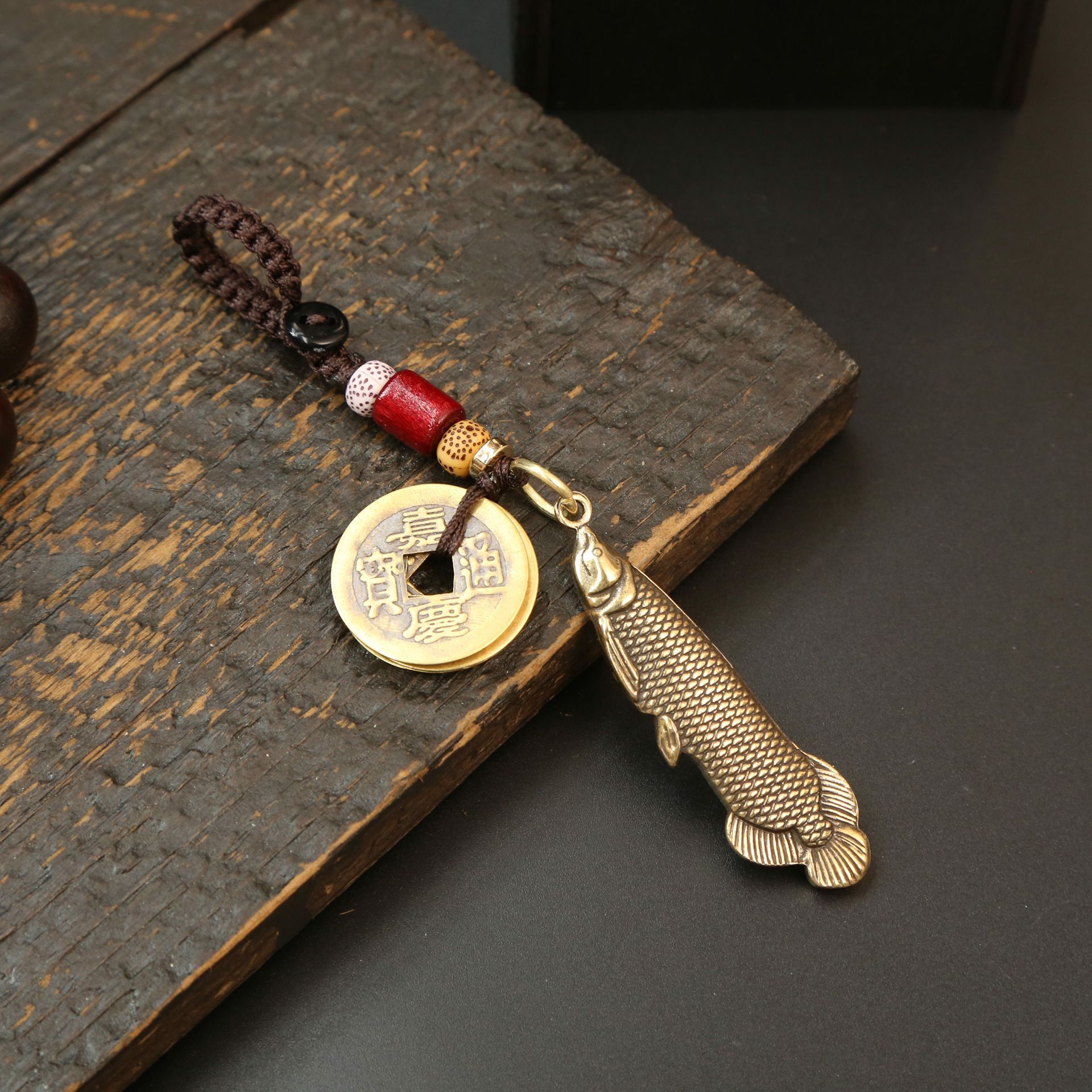황동 황금 용 물고기 키 체인 펜던트 남녀 가방 자동차 키 펜던트 5 황제 돈 diy Knot