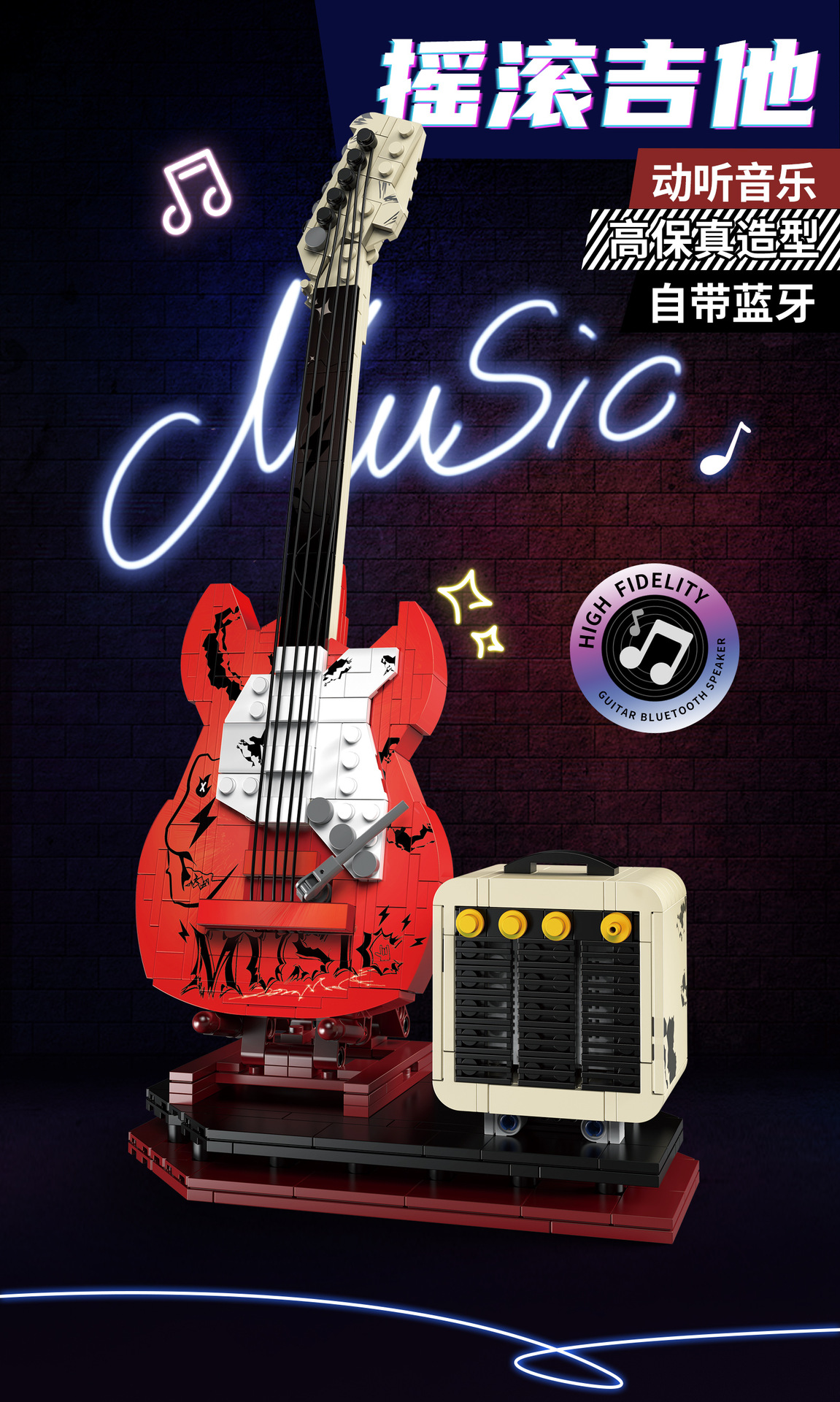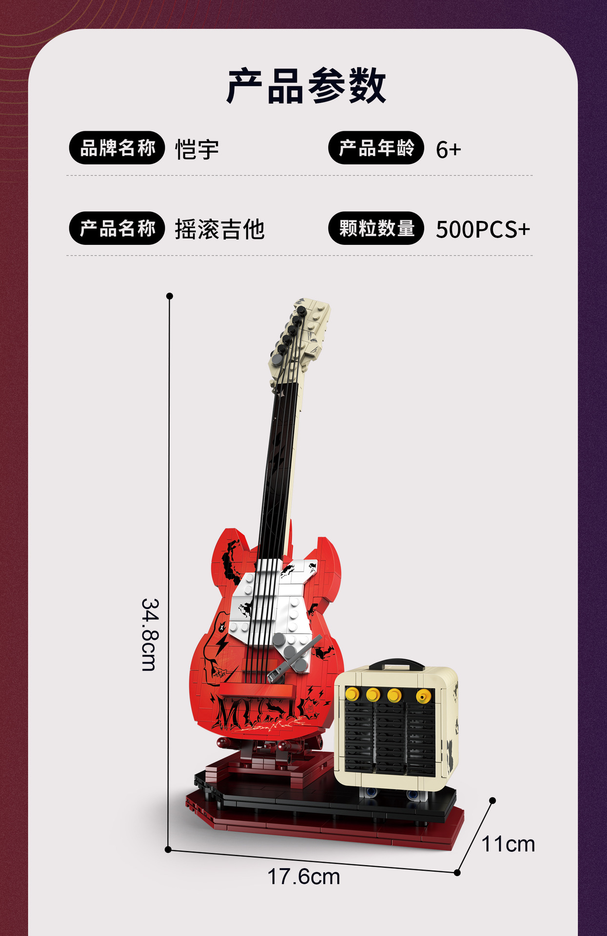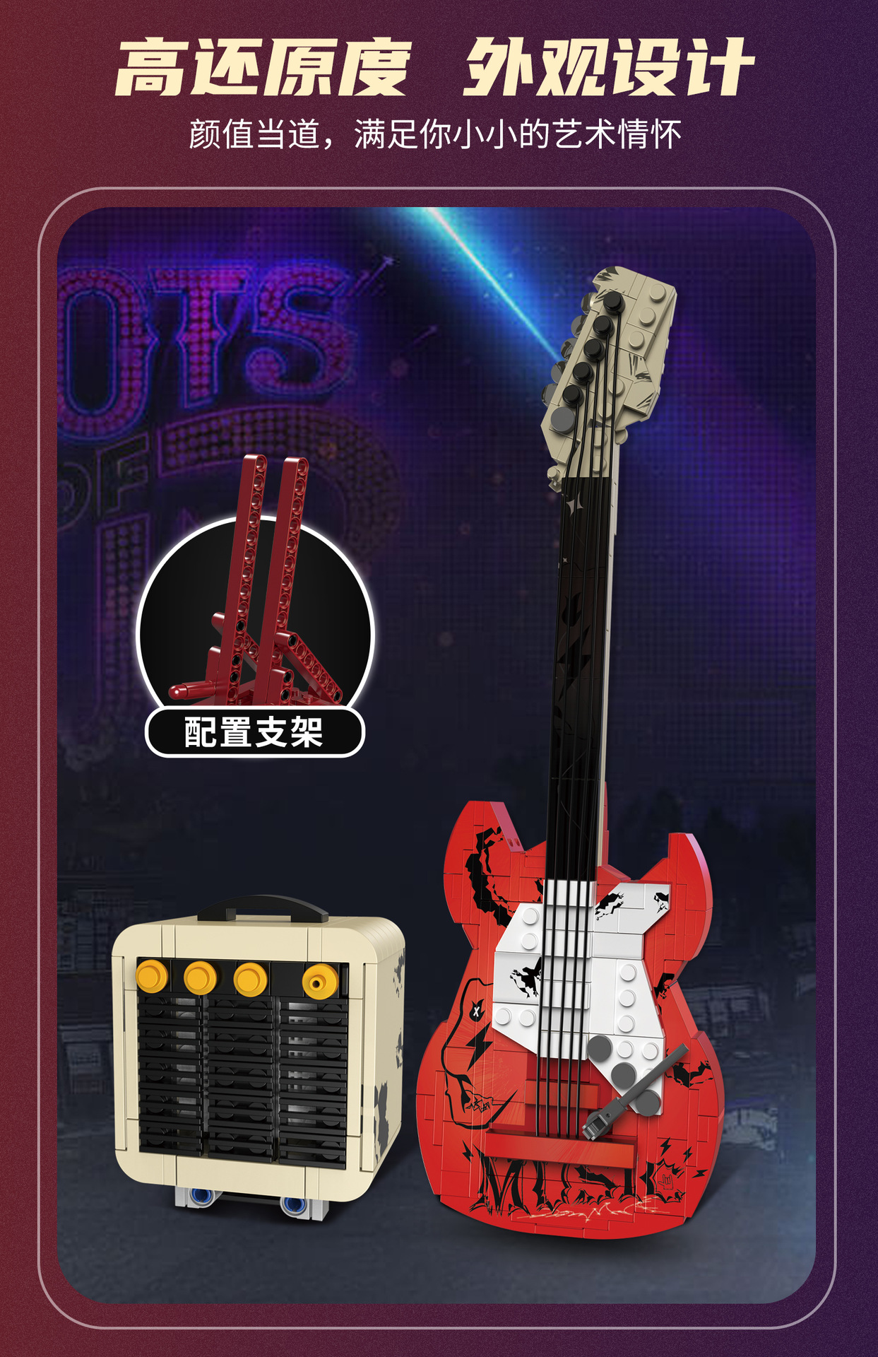Kaiyu 록 일렉트릭 기타 음악 조립 빌딩 블록 호환 레고 창조적 인 선물 국경 장난감 소년 5-12 세