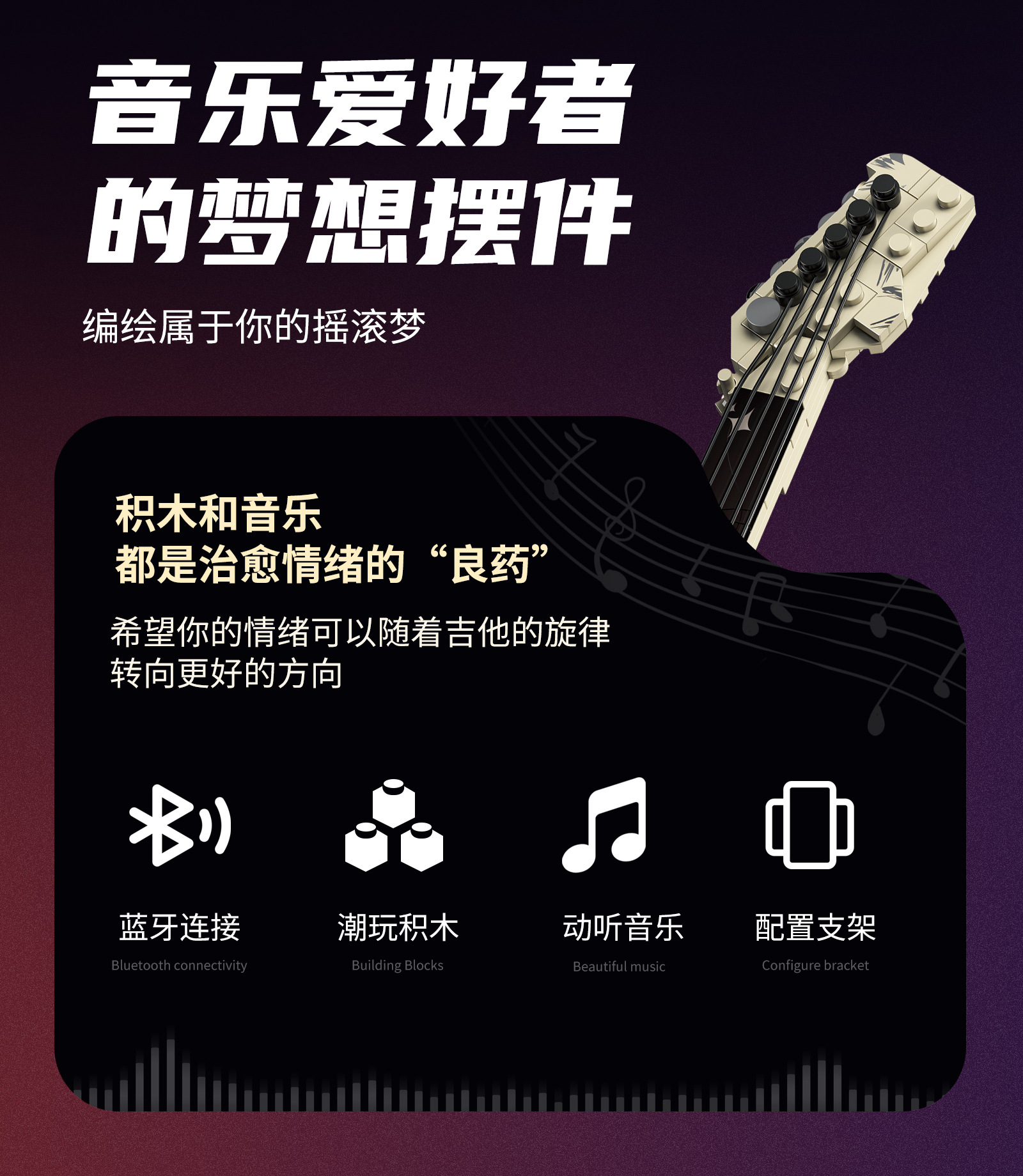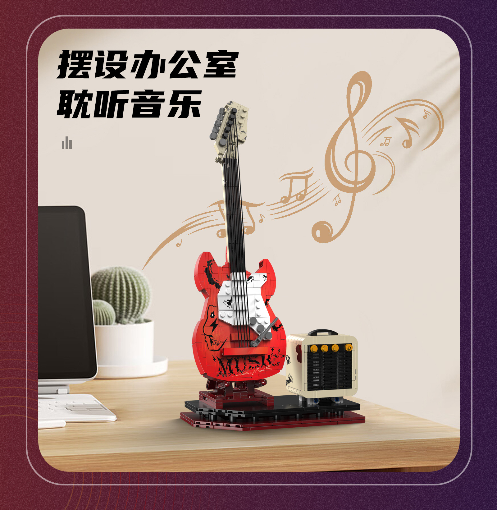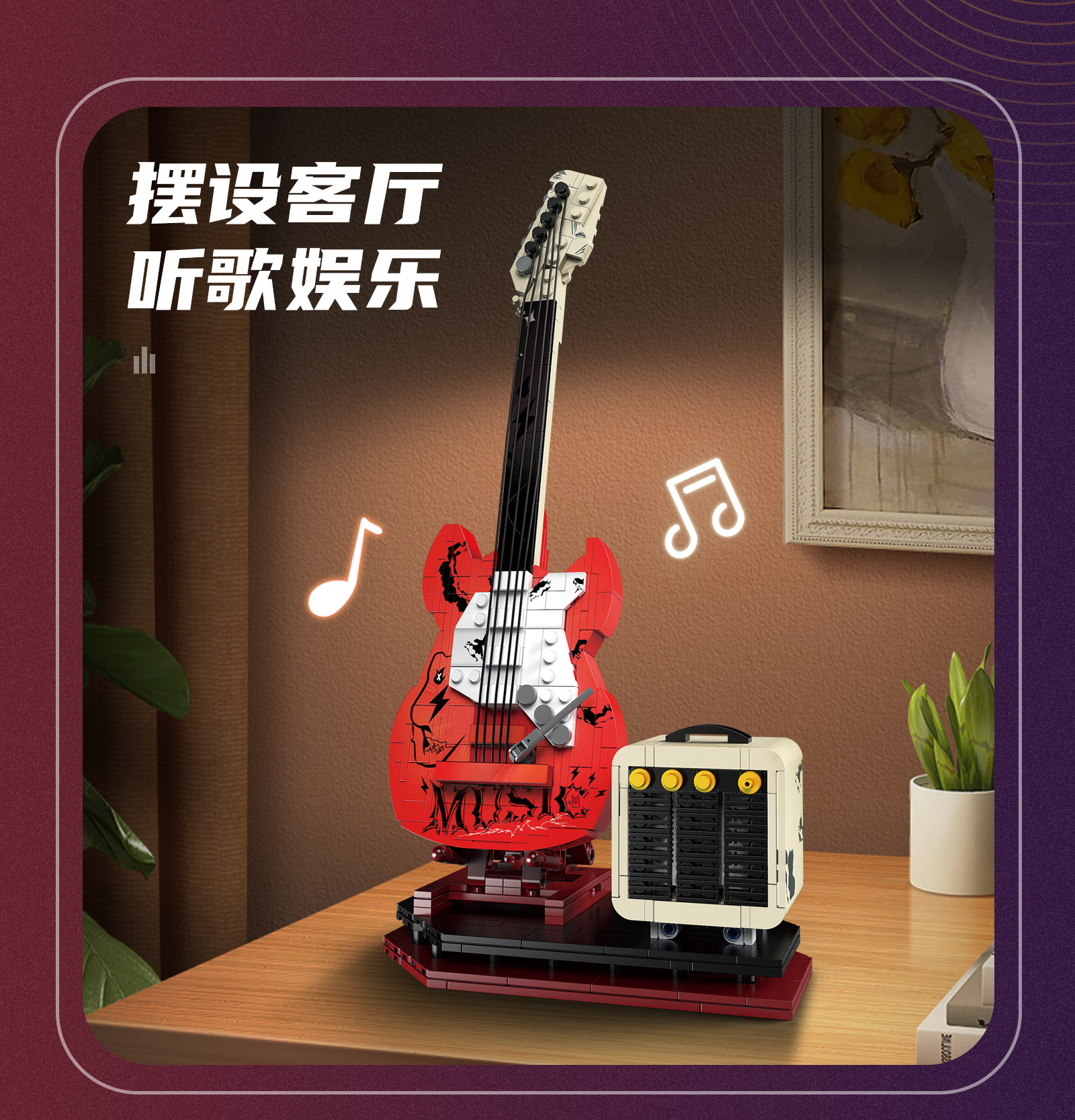Kaiyu 록 일렉트릭 기타 음악 조립 빌딩 블록 호환 레고 창조적 인 선물 국경 장난감 소년 5-12 세