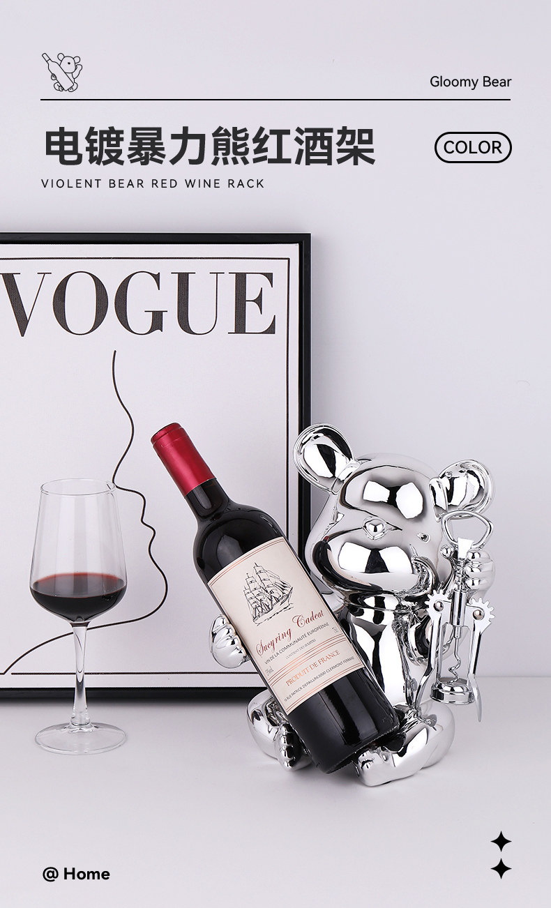 • 곰 레드 와인 랙 전기 도금 실버