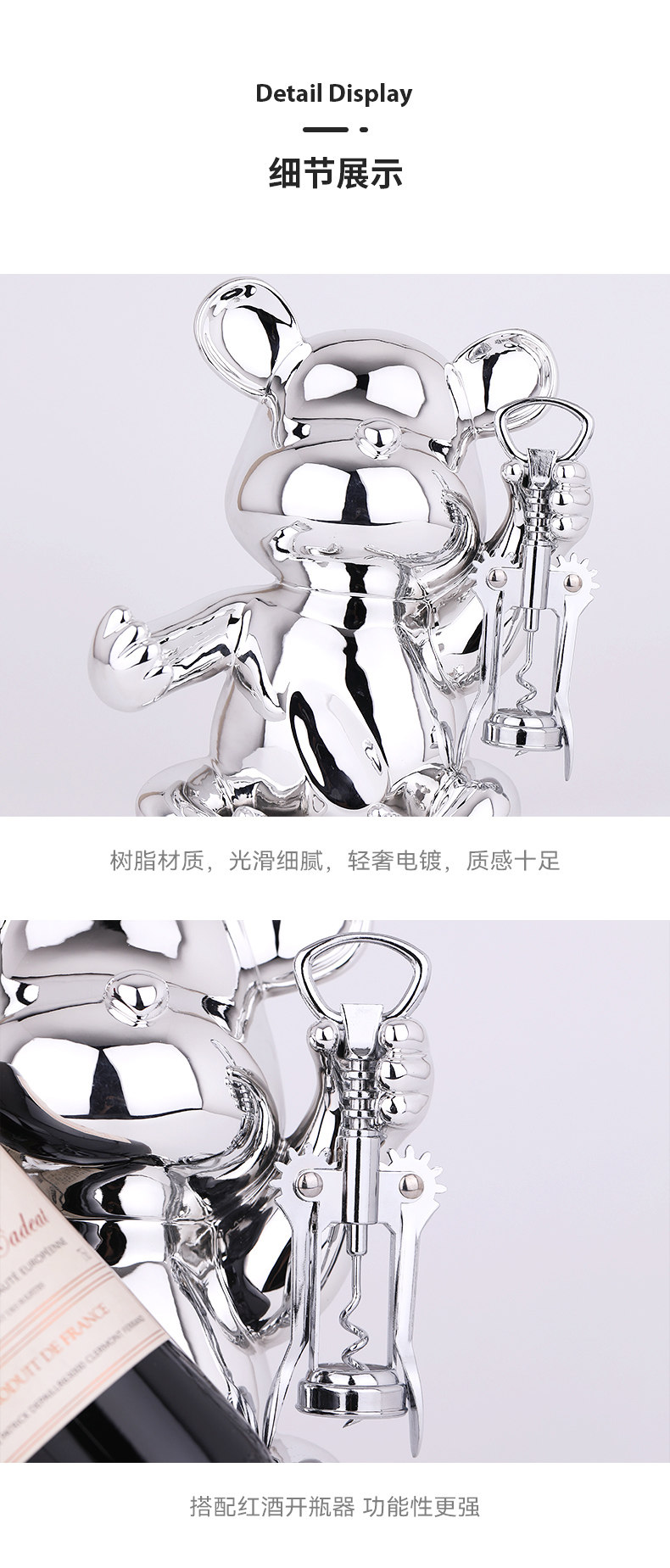 • 와인 랙 곰 전기 도금 실버 플러스 병따개