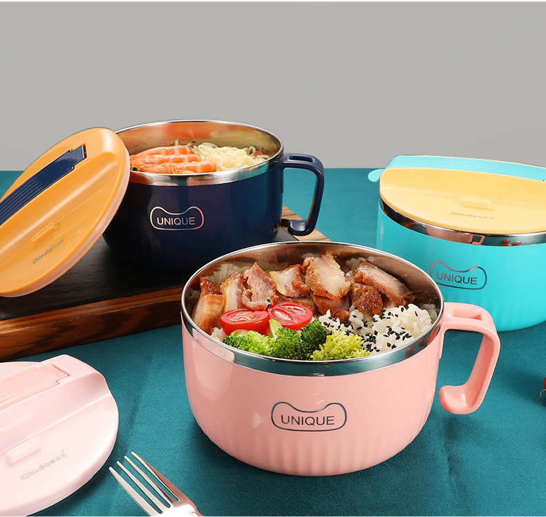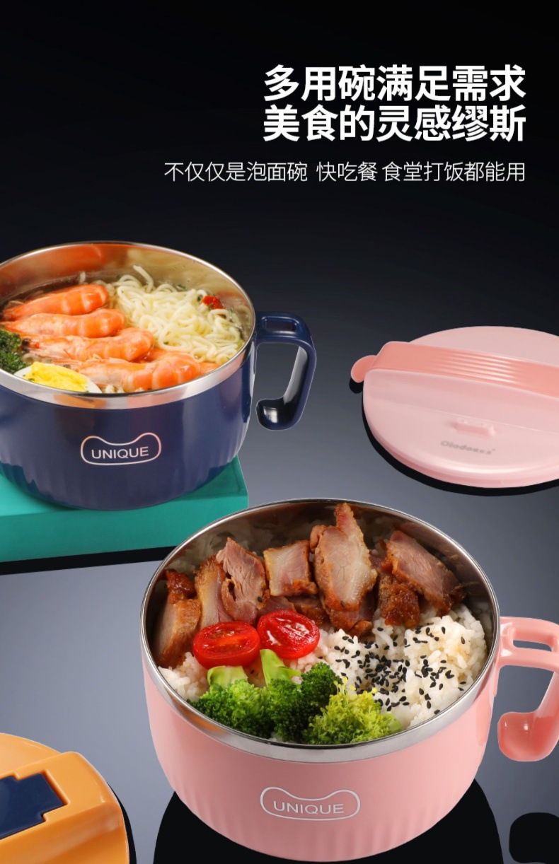 304 스테인레스 스틸 인스턴트 국수 그릇 뚜껑 대용량 커플 인스턴트 국수 컵 보울 학생 기숙사 도시락