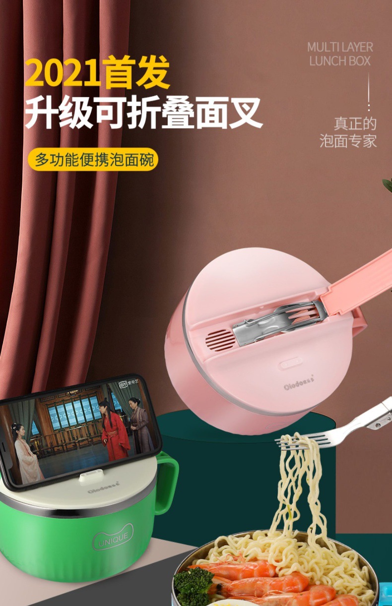 • 다기능 2단 라면그릇 + 특수접이식 304면포크 [그린]