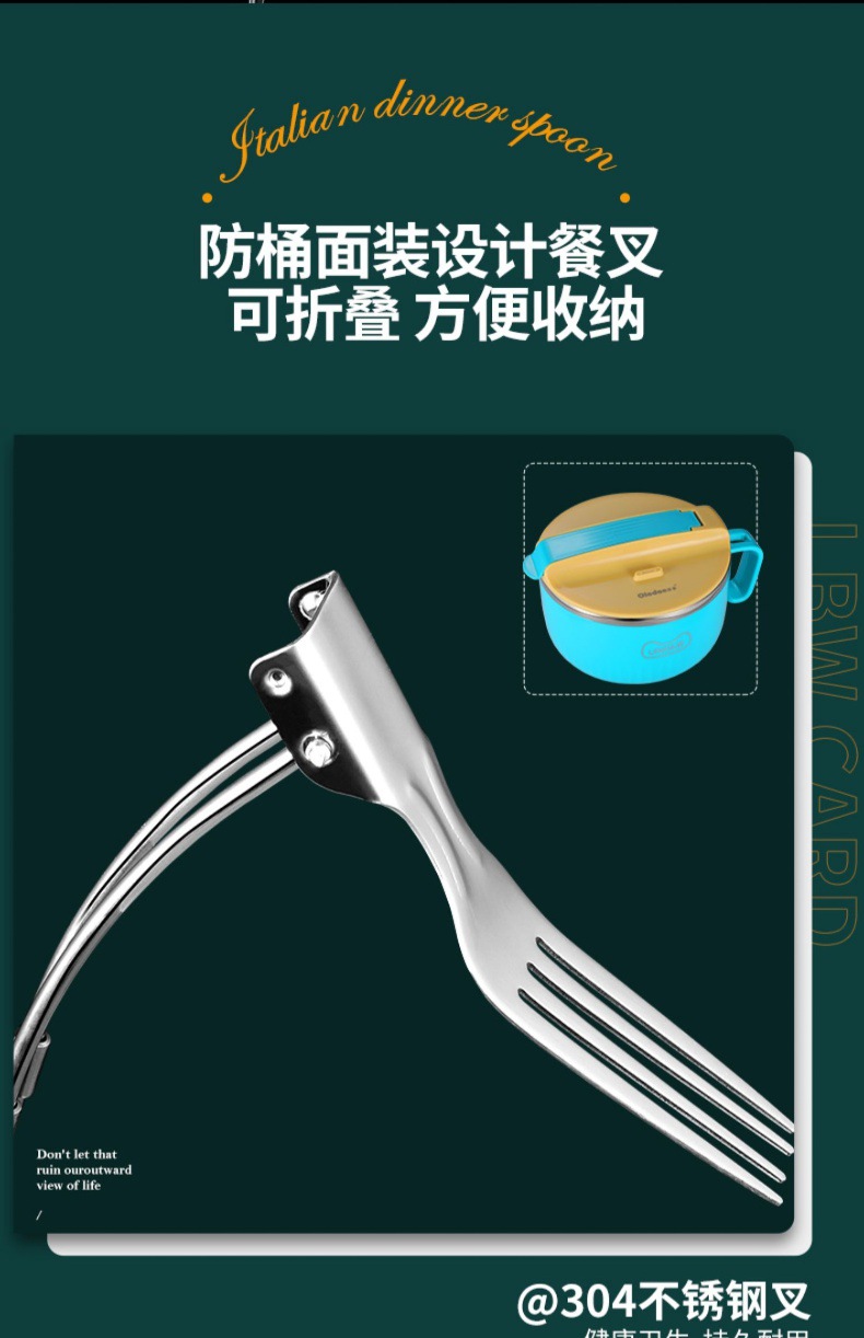• 다기능 2단 라면그릇 + 특수접이식 304면포크 [청록색]