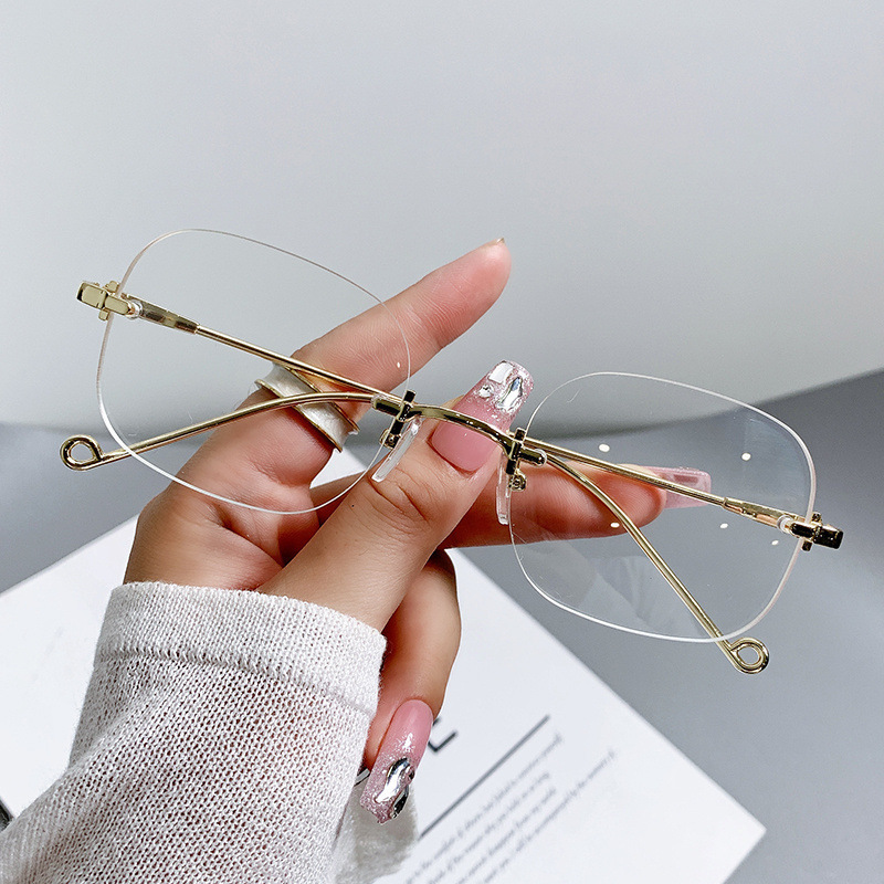 리틀 레드 북 안티 블루 라이트 일반 안경 남성과 여성 인터넷 유명 패션 트렌드 프레임리스 화이트 플랫 안경 근시 안경