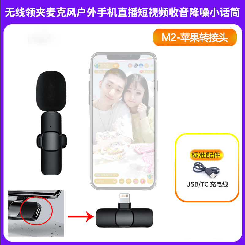 跨境新款领夹式户外直播吃播优选,2.4GWIFI无线收音麦克风,抖音快手降噪小话筒