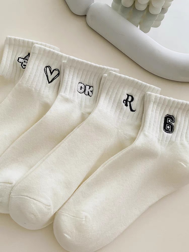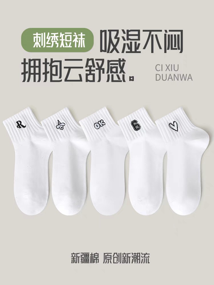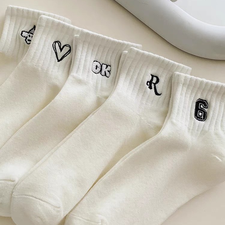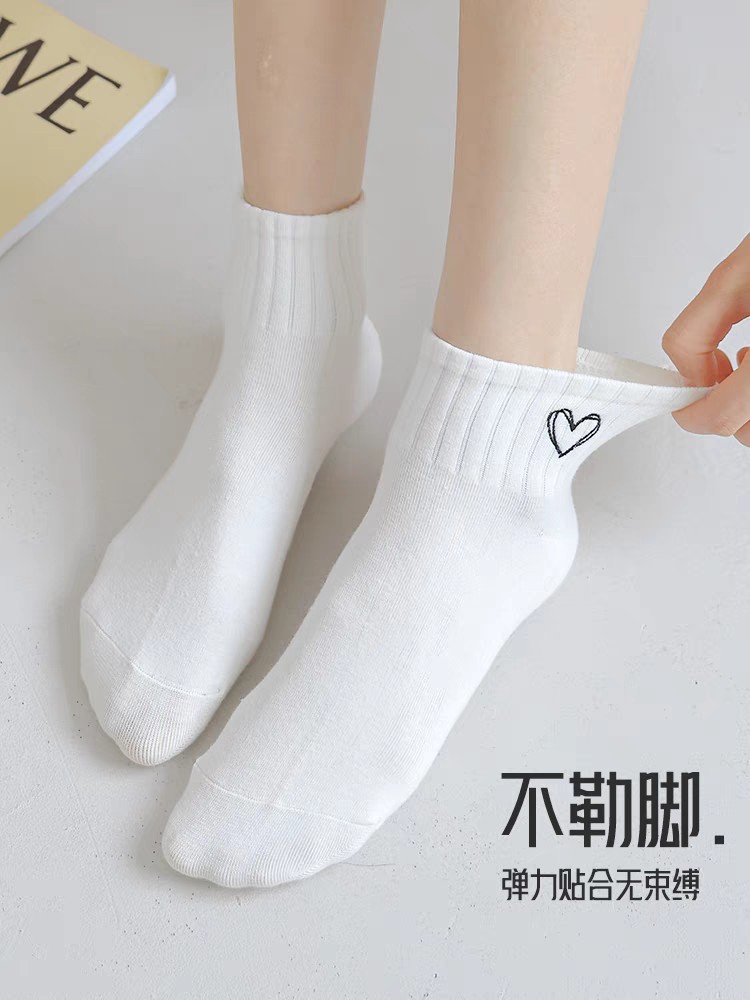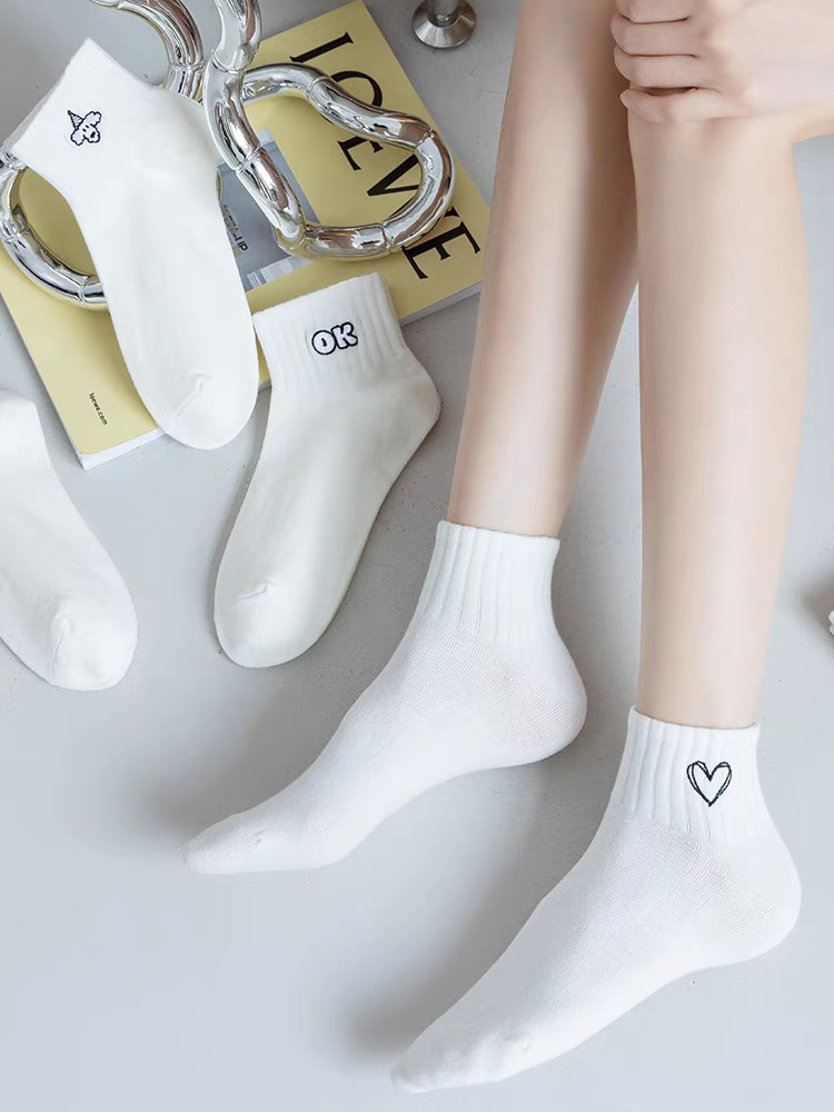 여성 양말 봄/여름 얇은 순수한 흰색 짧은 일본 자수 스포츠 사랑 여성 주지 면 양말스토어 가기