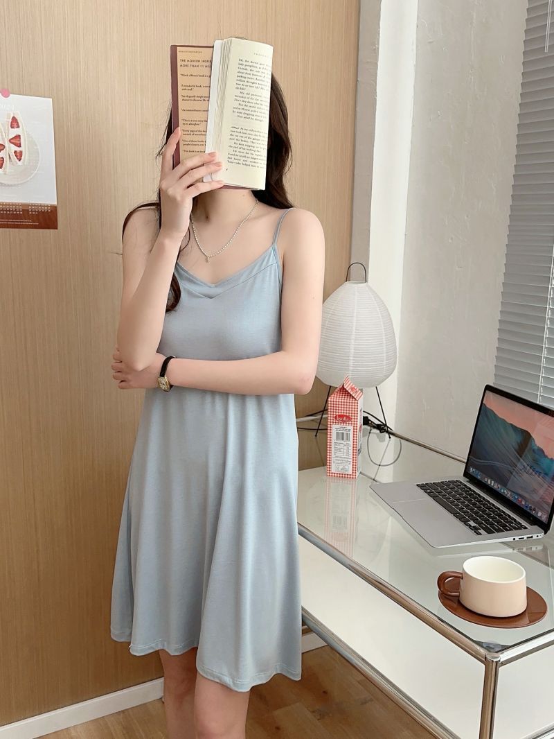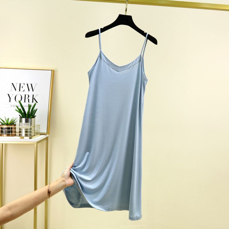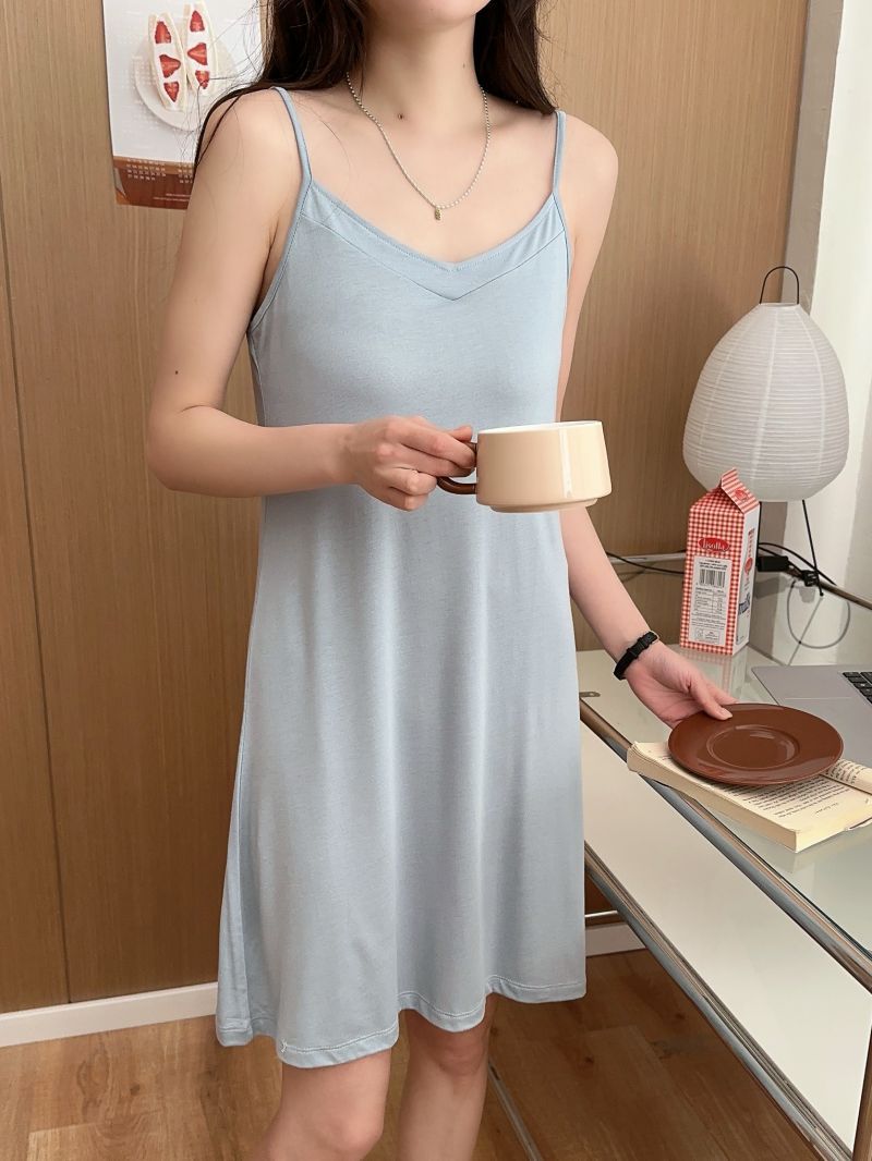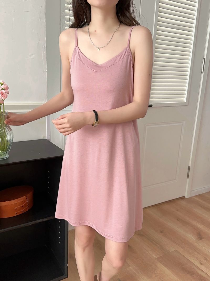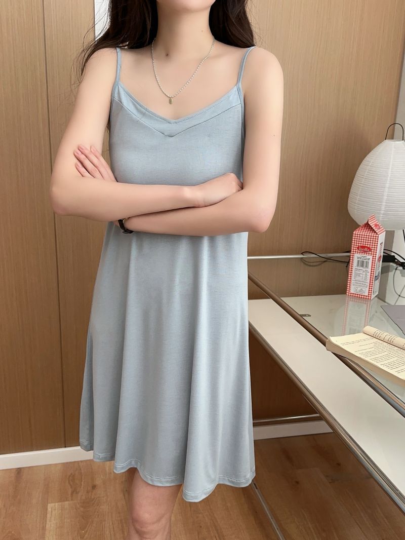 모달 서스펜더 나이트 드레스 여름 얇은 V 넥 섹시한 백리스 원피스 겉옷 홈웨어 민소매 원피스스토어 가기