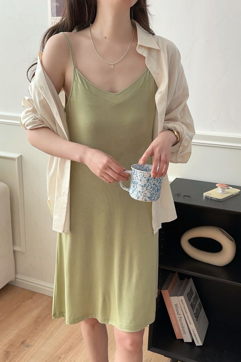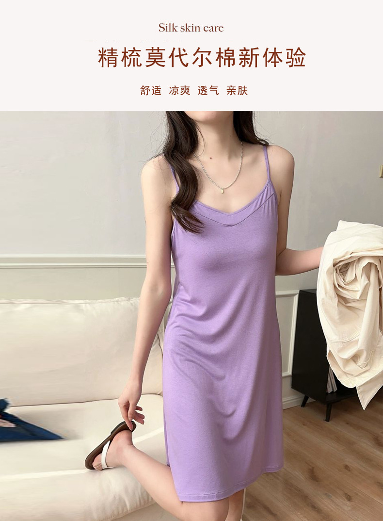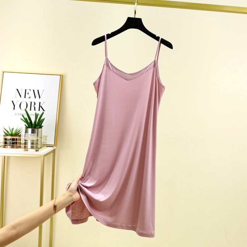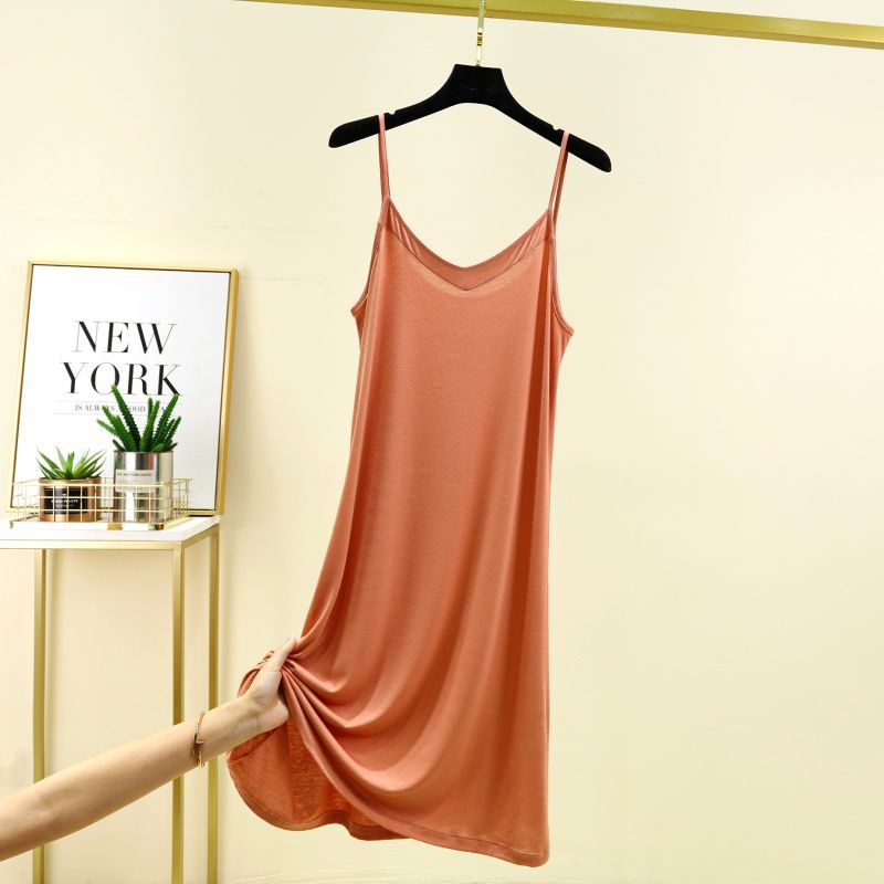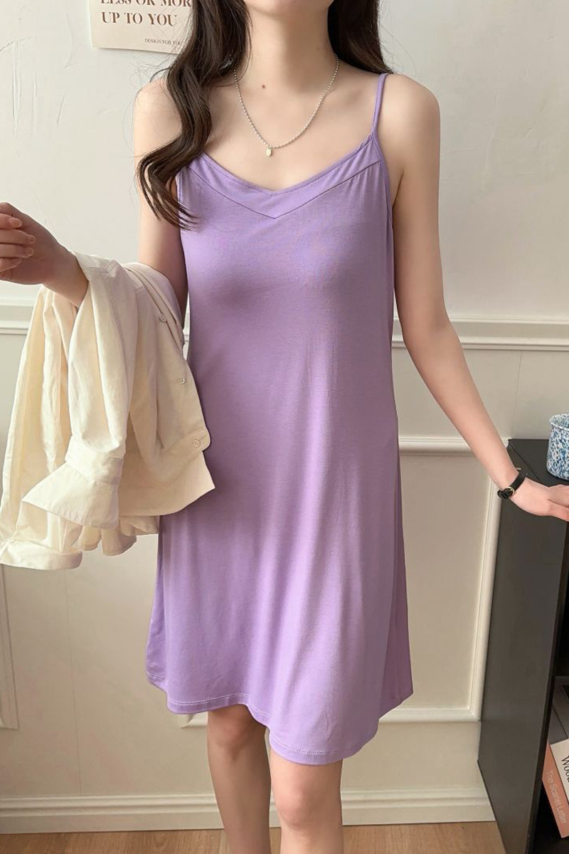 모달 서스펜더 나이트 드레스 여름 얇은 V 넥 섹시한 백리스 원피스 겉옷 홈웨어 민소매 원피스스토어 가기