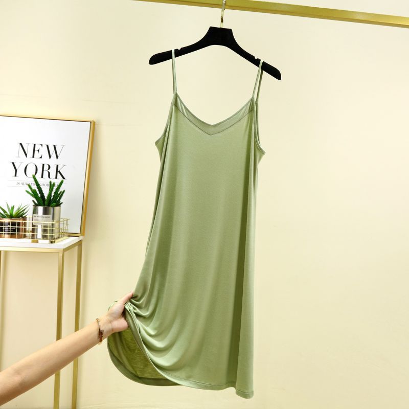 모달 서스펜더 나이트 드레스 여름 얇은 V 넥 섹시한 백리스 원피스 겉옷 홈웨어 민소매 원피스