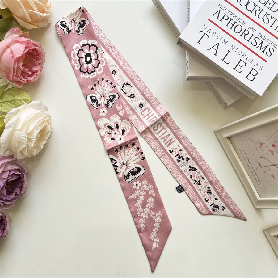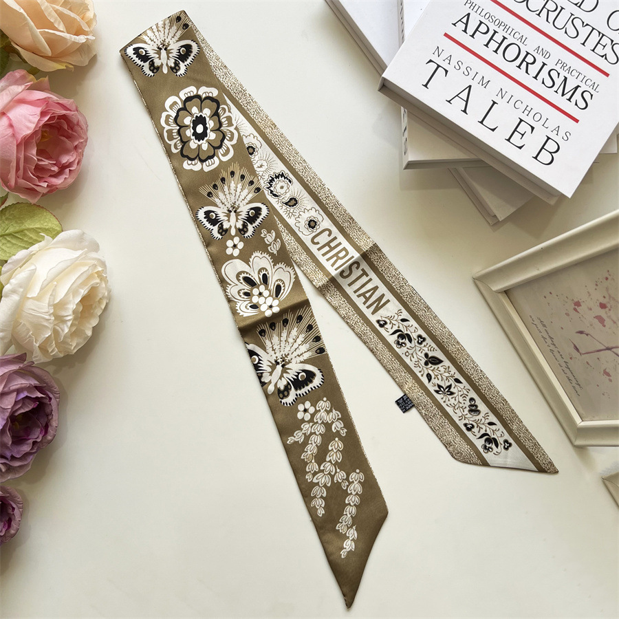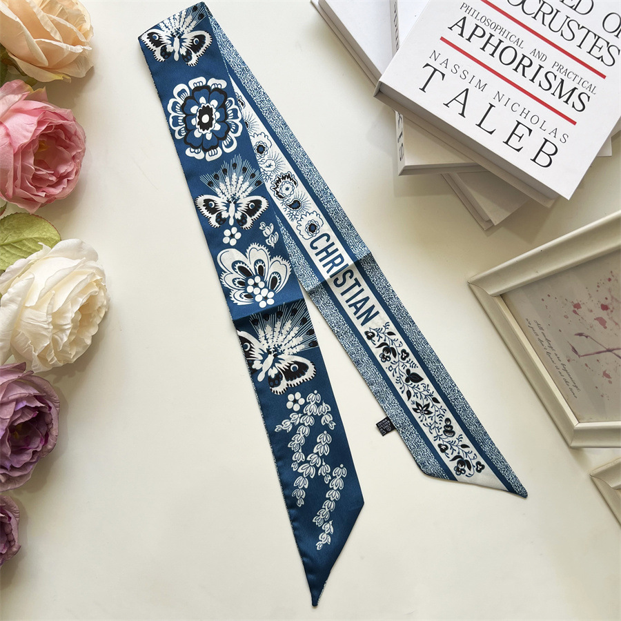 2024 여름 국가 스타일 꽃 무늬 실크 스카프 헤어 밴드 스카프 고급 감각 작은 스트립 바인딩 붕대 헤어 리본 생방송스토어 가기