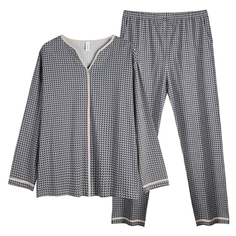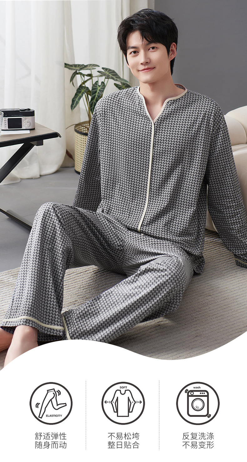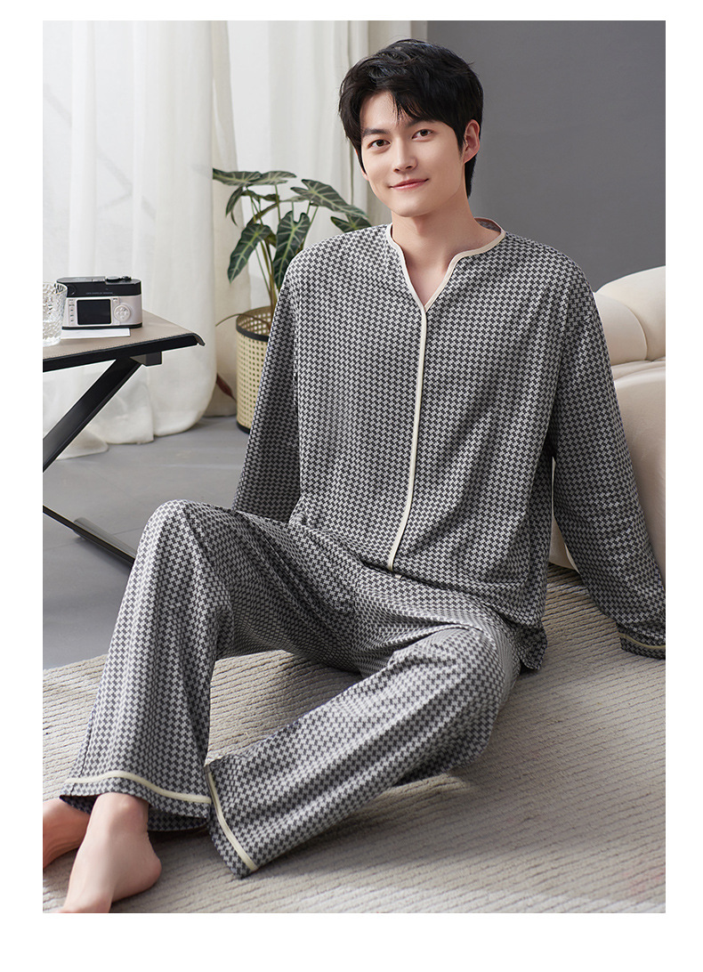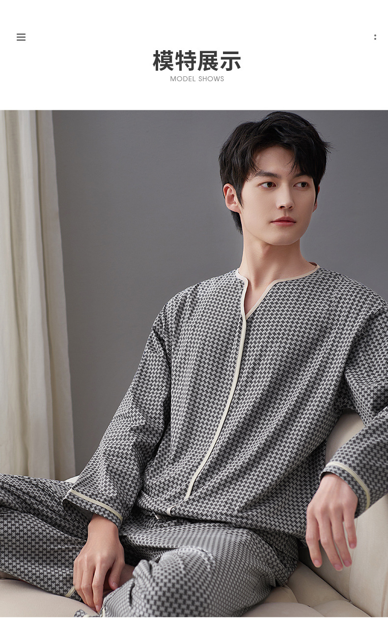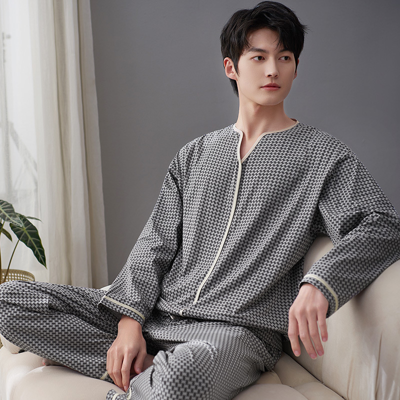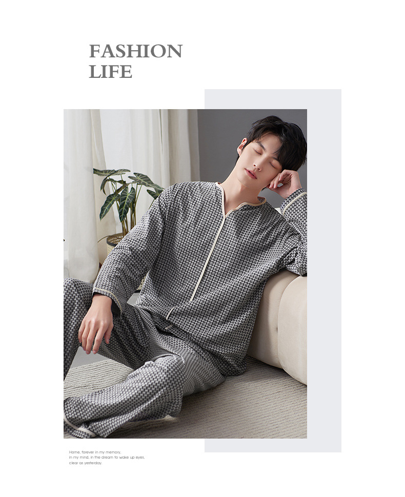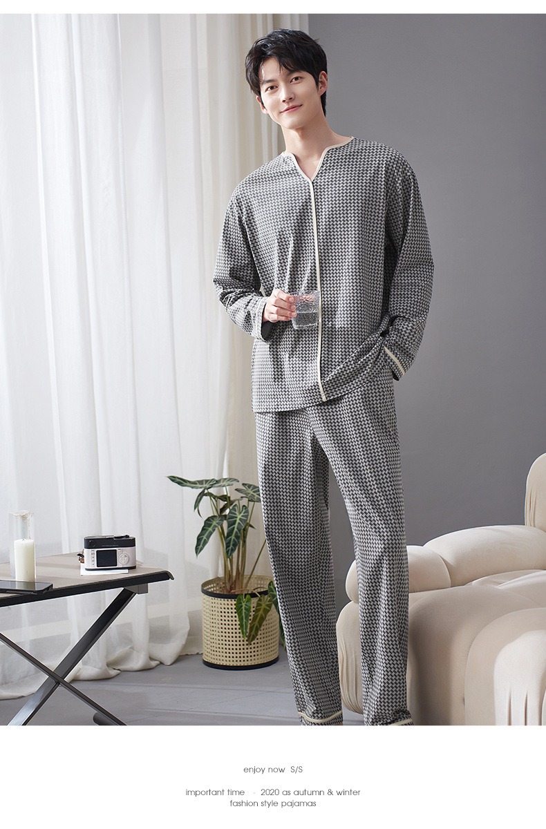 Chaoxing 남성용 홈웨어 풀오버 v-neck 단면면 풀 Plaid는 느슨한 캐주얼 남성용 잠옷 밖에서 착용 할 수 있습니다.스토어 가기