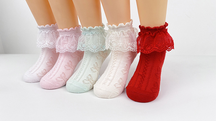 소녀 양말 공주 스타일 봄과 여름 순수한면 레이스 어린이 레이스 양말 여름 얇은 통기성 아기 소녀 댄스