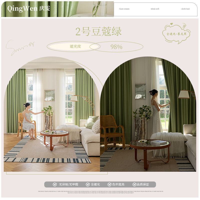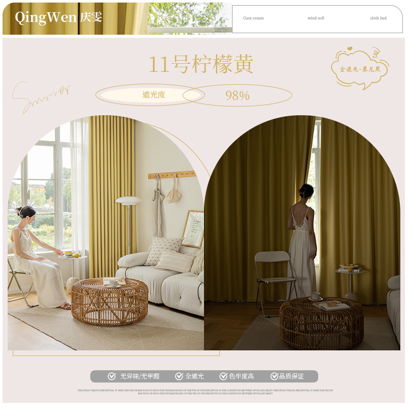 注:需要加工成品窗帘,卷边加工后宽度会有10-15公分左右误差,纯手工裁剪制作高度误差2厘米左右难以避免,属于正常范围
