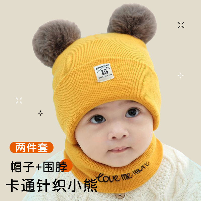 아기 모자 봄과 가을 0-3-6-12 개월 아기 소년과 소녀 모자 겨울 따뜻한 양모 어린이 모자 스카프