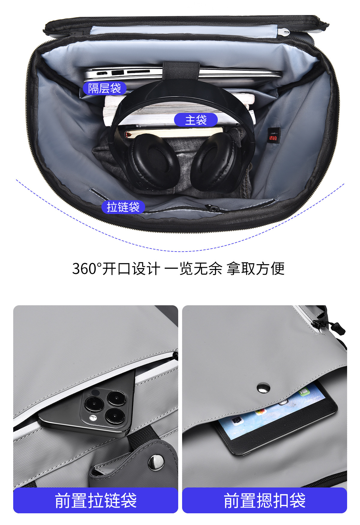 • 로고가 없는 밝은 회색과 짙은 회색 [컴퓨터 15.6inch PC 수용 가능]