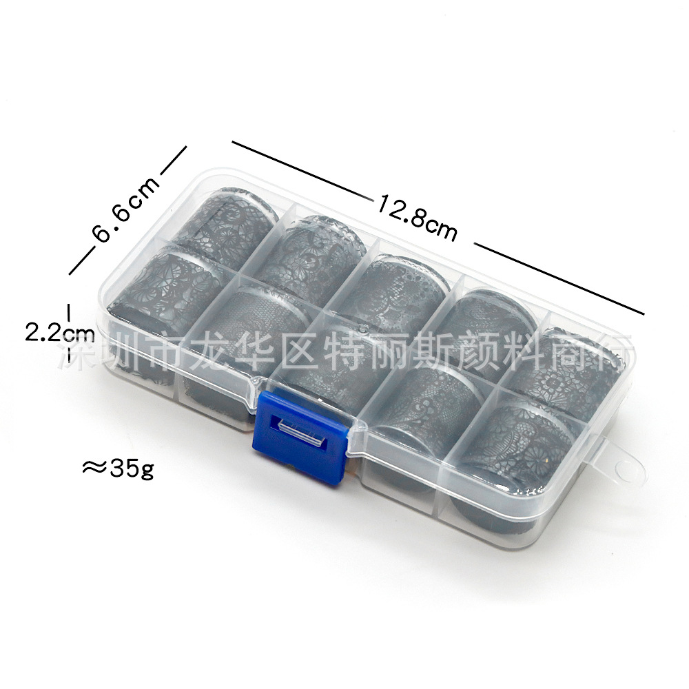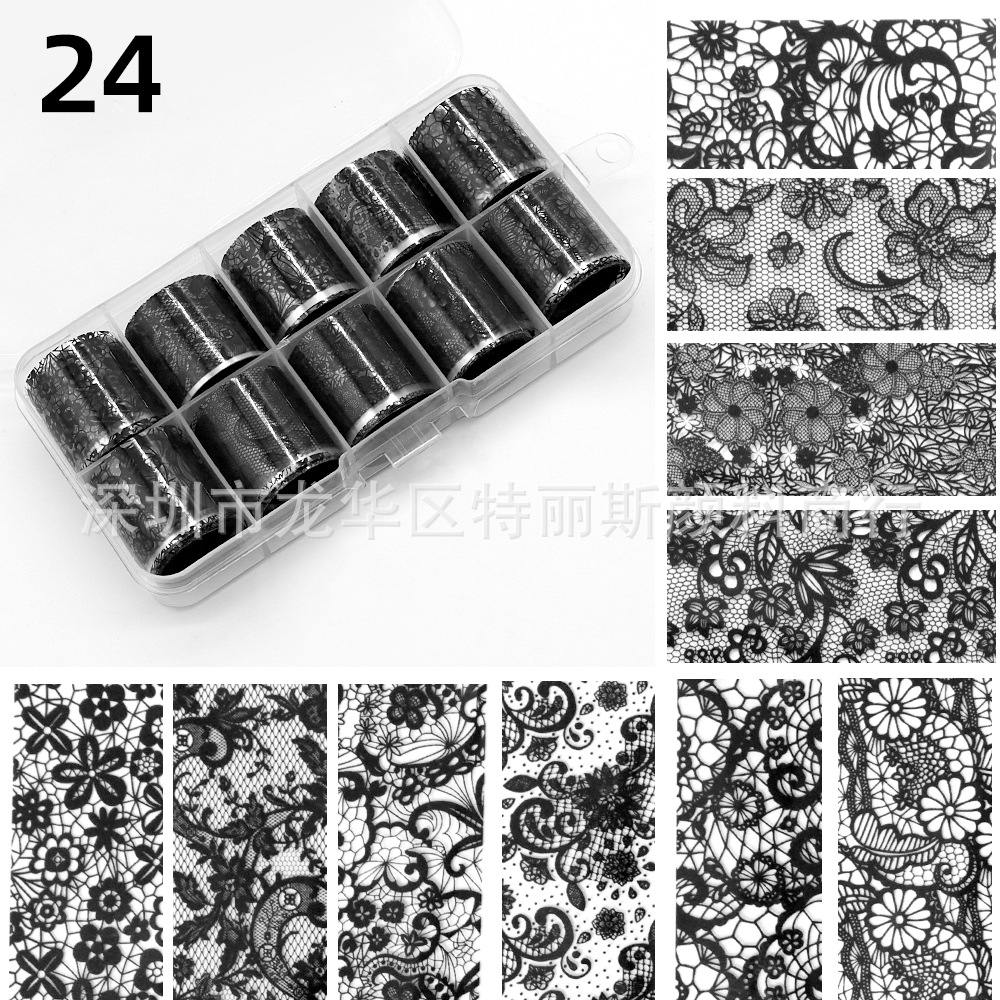 국경 간 일본 복고풍 네일 전송 스티커 10 그리드 별이 빛나는 하늘 흑백 섹시한 레이스 작은 꽃 레이스 네일스토어 가기