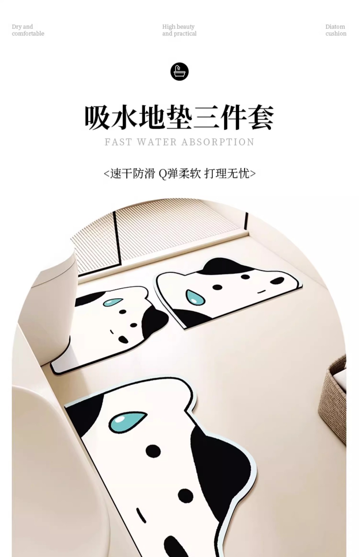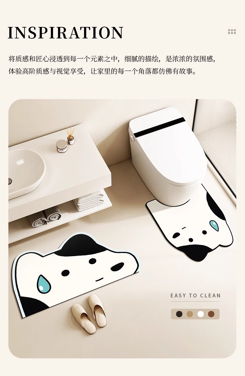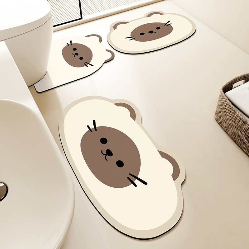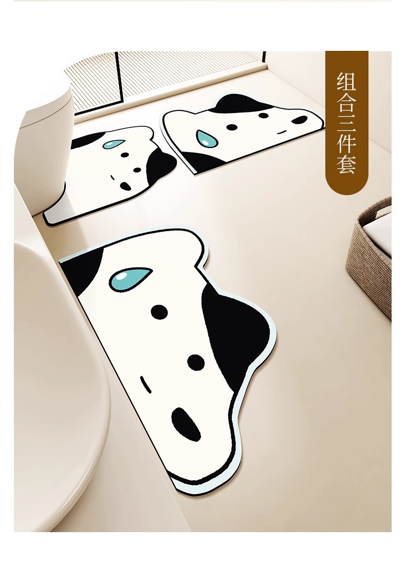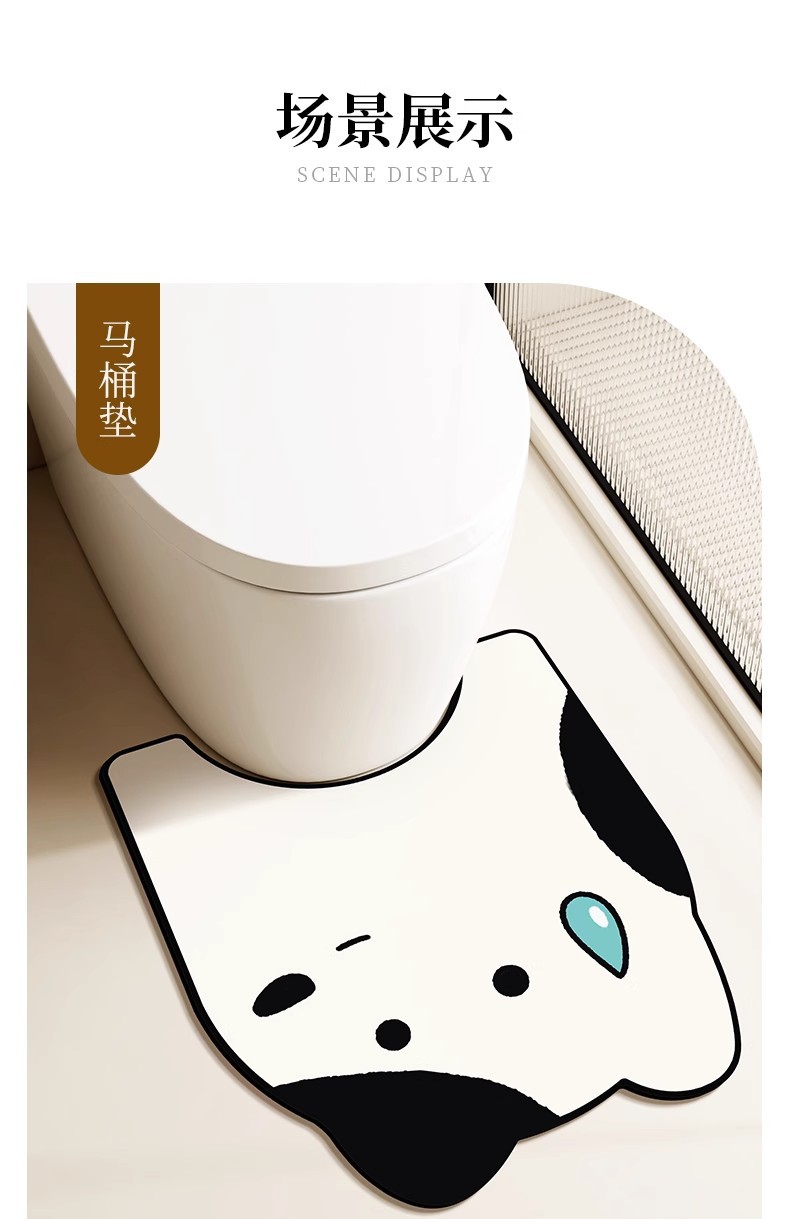 卡通浴室地垫硅藻泥吸水防滑垫厕所三件套速干免洗耐脏马桶u型垫