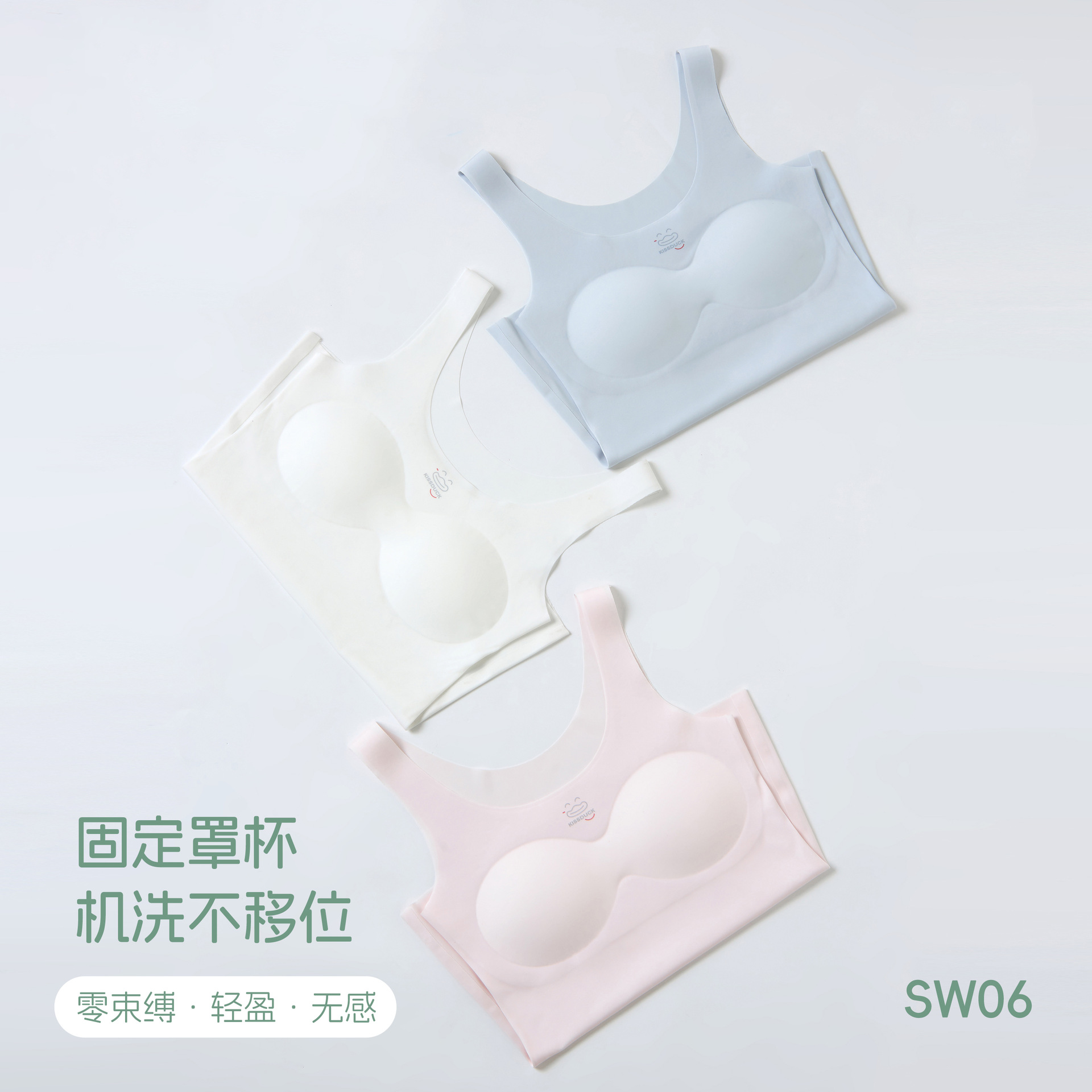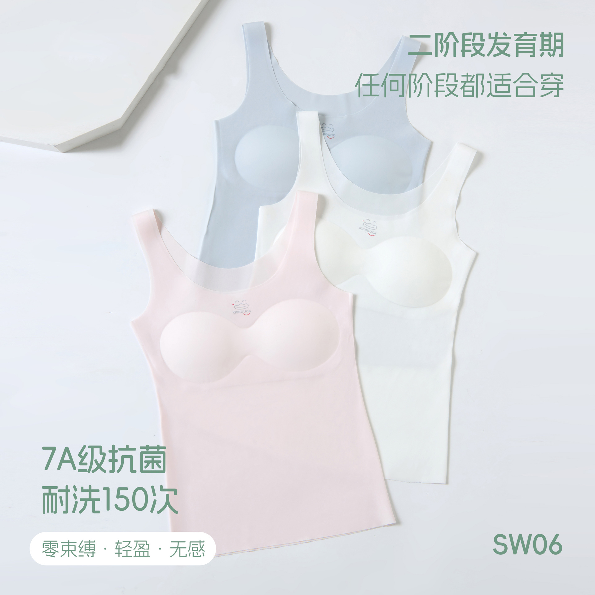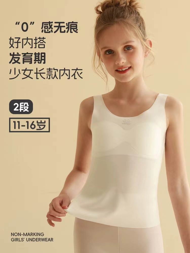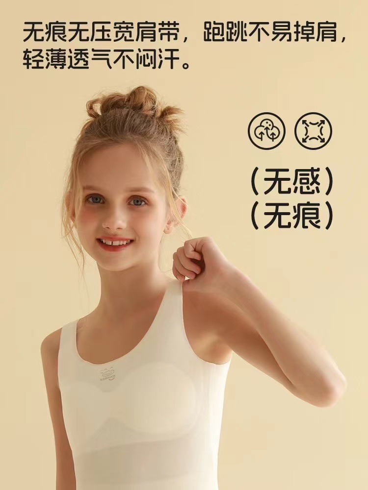 발달기 학생용 스포츠 조끼, 어린 소녀용 무봉제 고정컵 브라, 여아용 노와이어 통기성 노출방지 브라