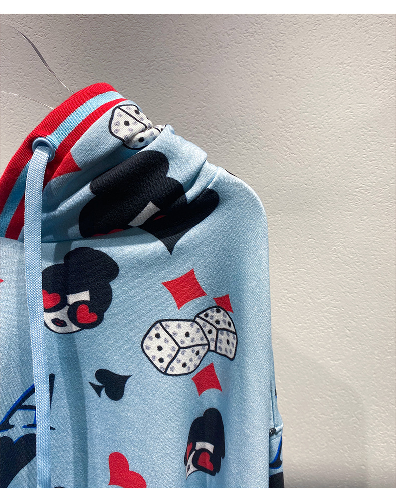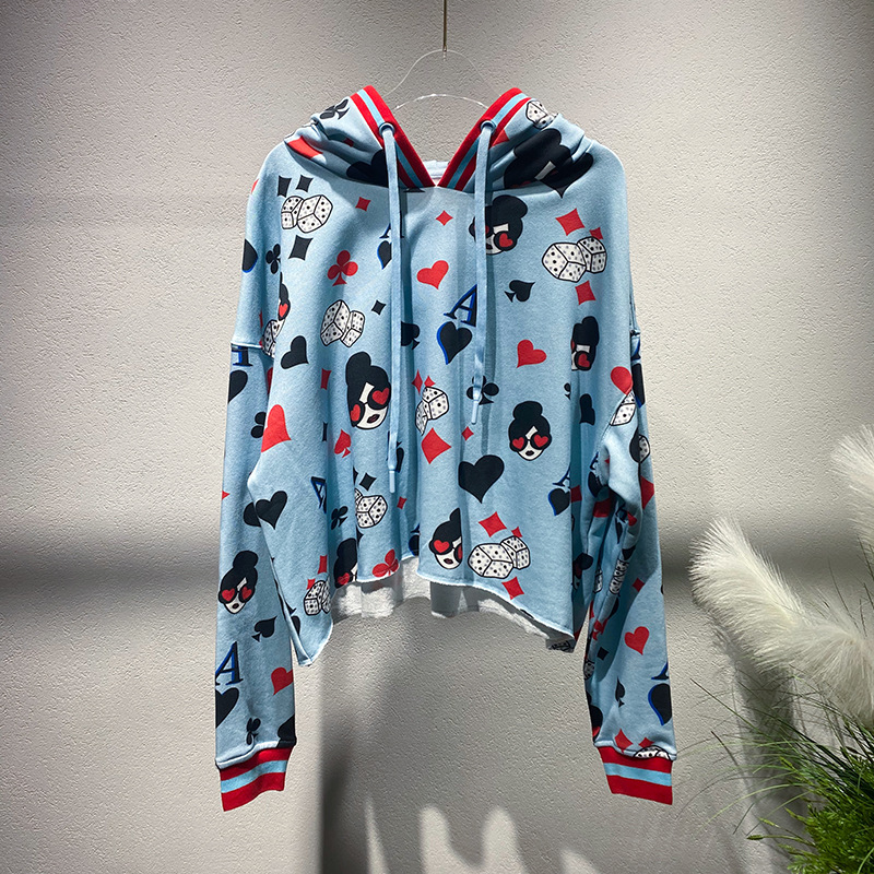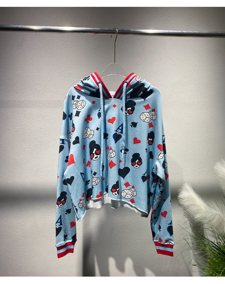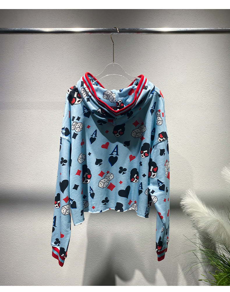 틈새 편지 포커 풀오버 재킷 2024 이른 봄 새로운 대비 컬러 긴 소매 후드 풀 프린트 스웨트 셔츠 여성용 트렌디
