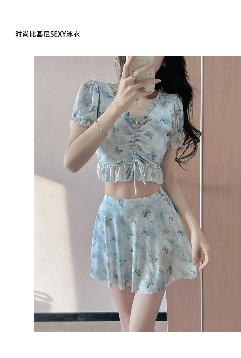 보수적 인 학생 분할 수영복 여성 한국 인 스타일 2024 새로운 인기있는 배꼽 슬리밍 순수한 욕망 스타일 신선한스토어 가기