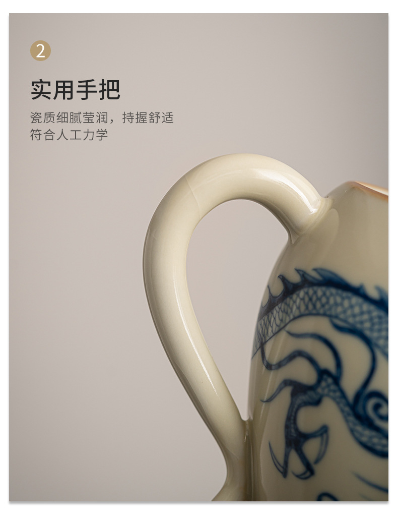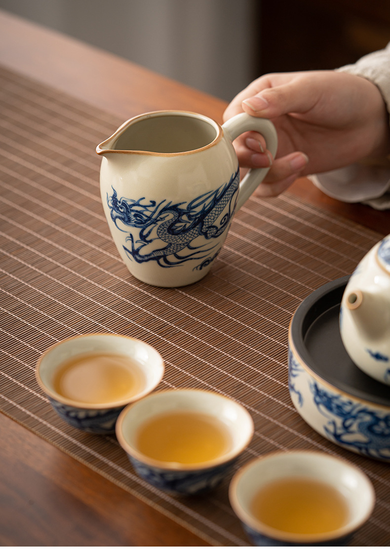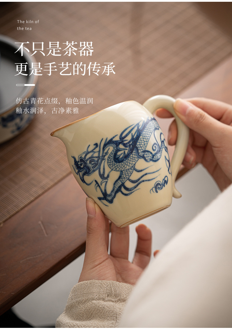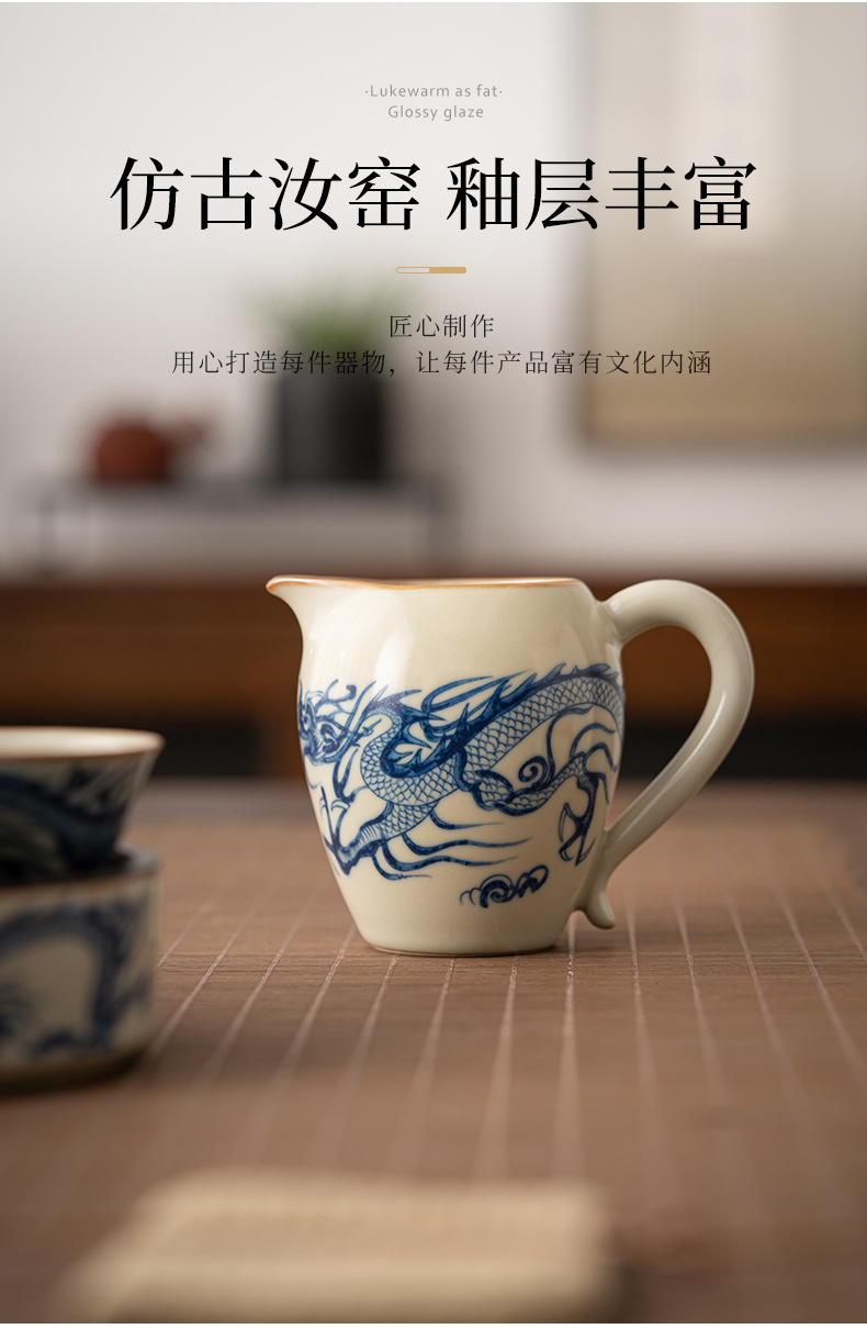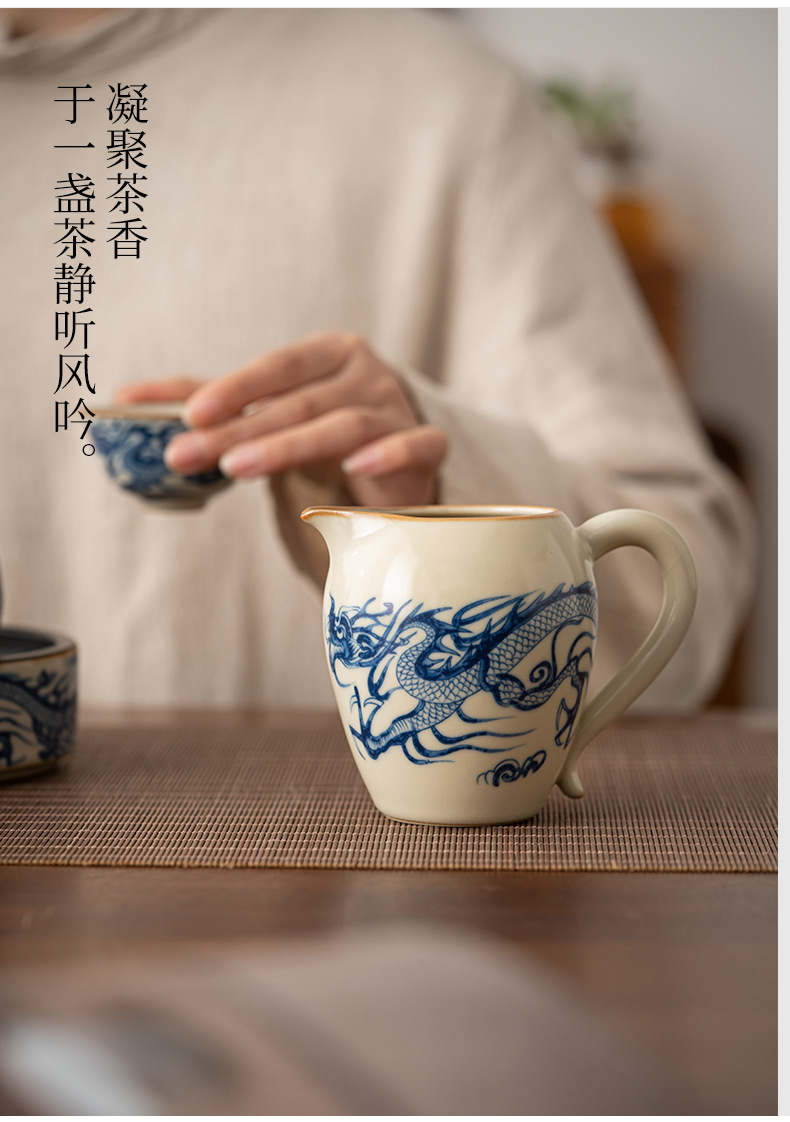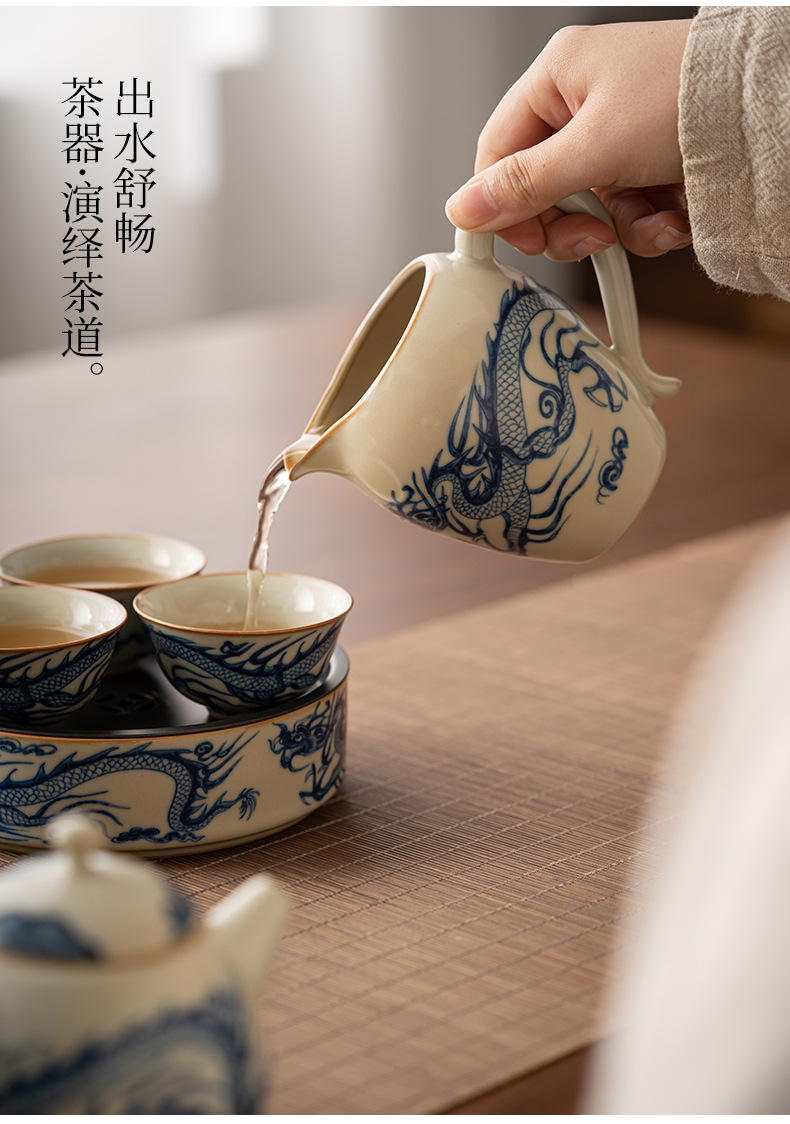 루 가마 파란색과 흰색 용 패턴 페어 컵 베이지 색 루 도자기 차 바다 가정용 쿵푸 차 세트 차 분리기를 올릴 수 있습니다.스토어 가기