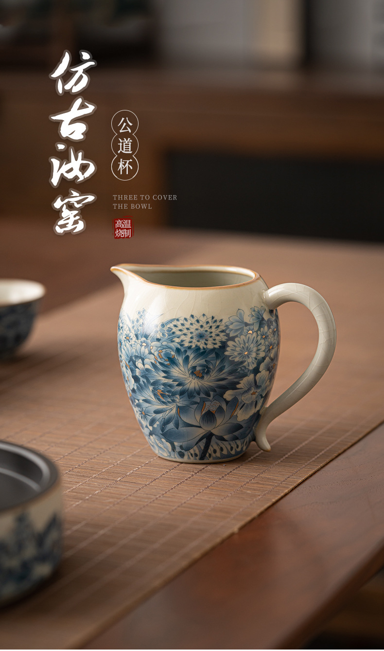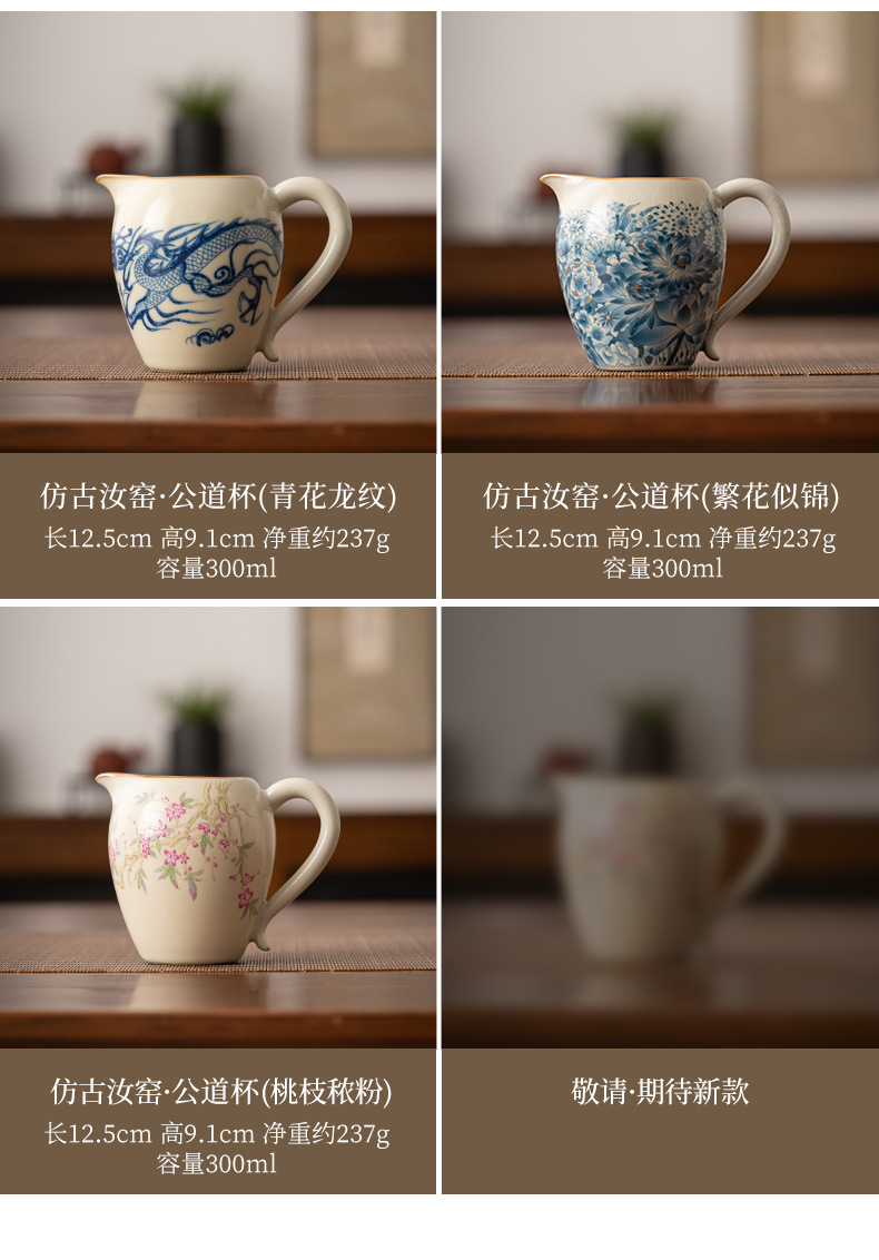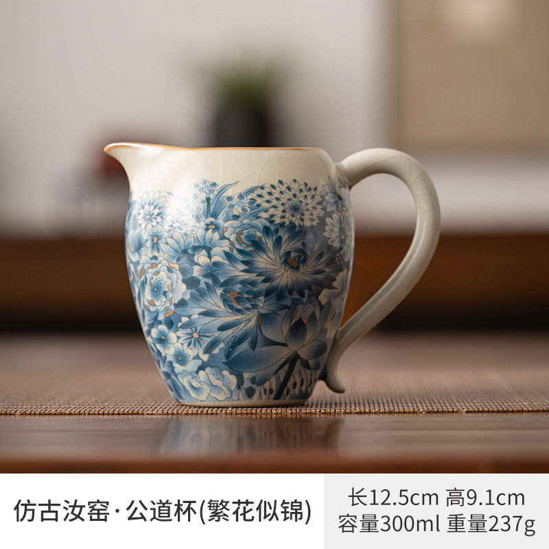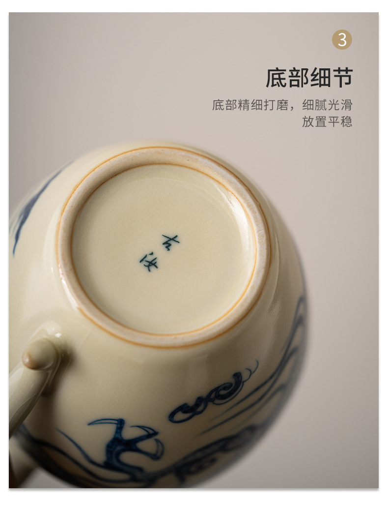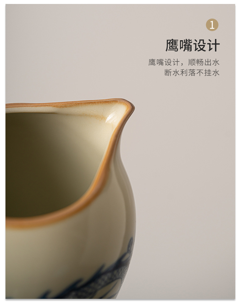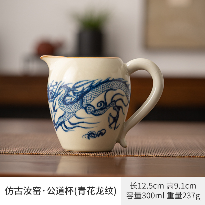루 가마 파란색과 흰색 용 패턴 페어 컵 베이지 색 루 도자기 차 바다 가정용 쿵푸 차 세트 차 분리기를 올릴 수 있습니다.스토어 가기