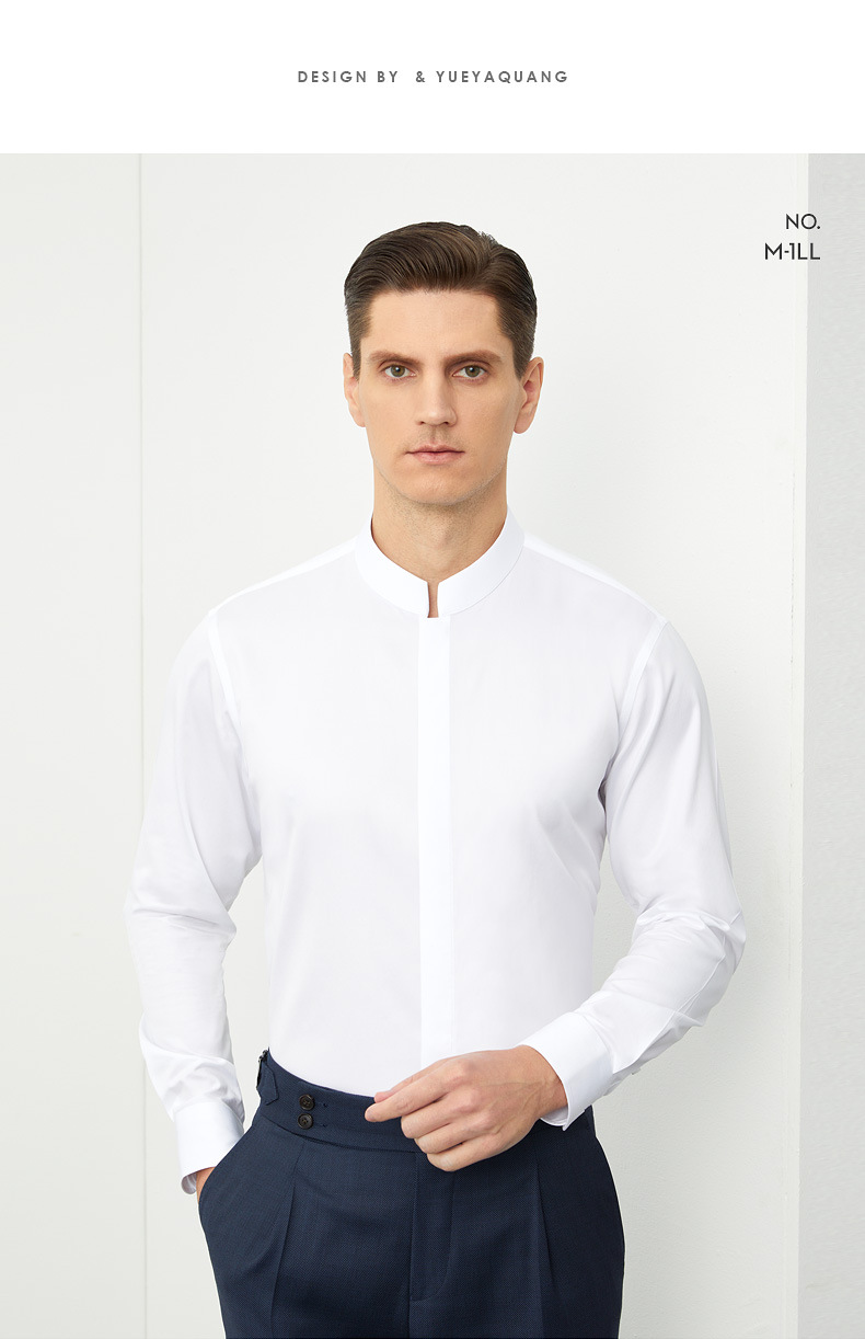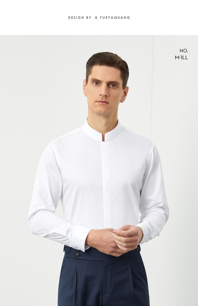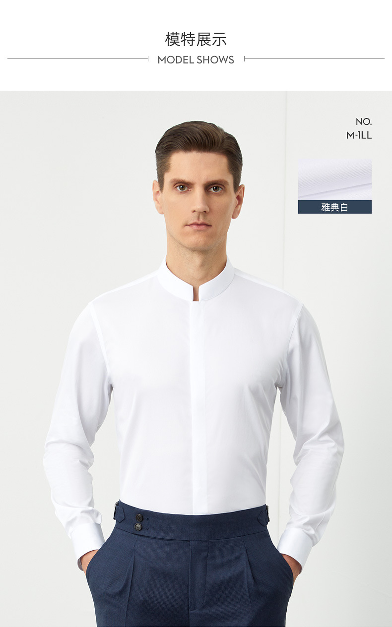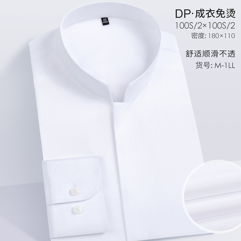 100S 순수 코튼 DP 기성복 노아이론 남성용 중국 스탠드 칼라 셔츠 봄, 가을 비즈니스 남성용 흰색 긴팔 셔츠