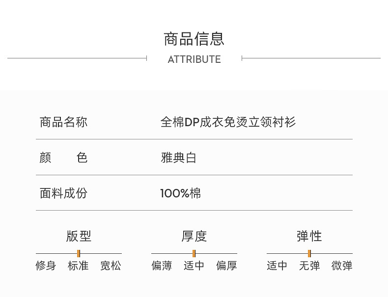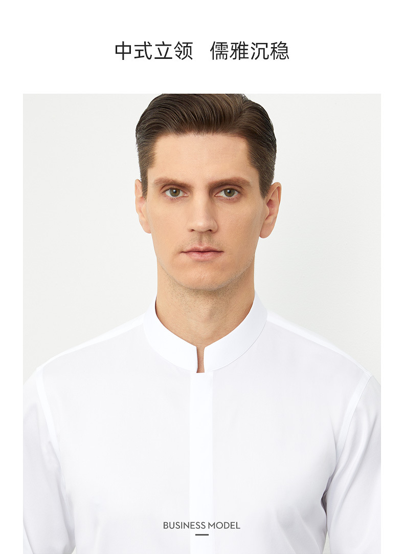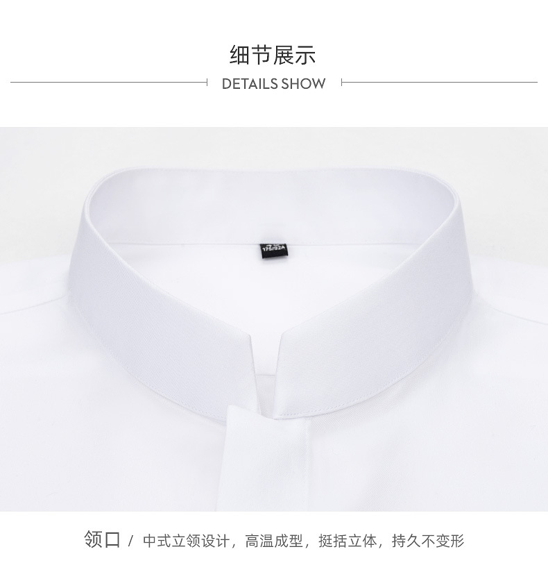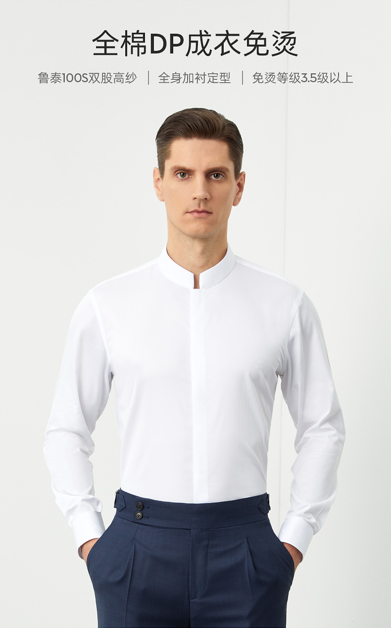 100S 순수 코튼 DP 기성복 노아이론 남성용 중국 스탠드 칼라 셔츠 봄, 가을 비즈니스 남성용 흰색 긴팔 셔츠스토어 가기