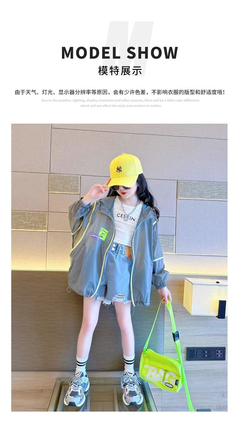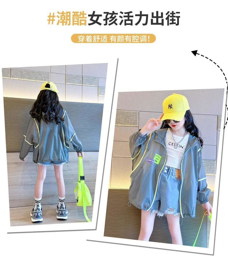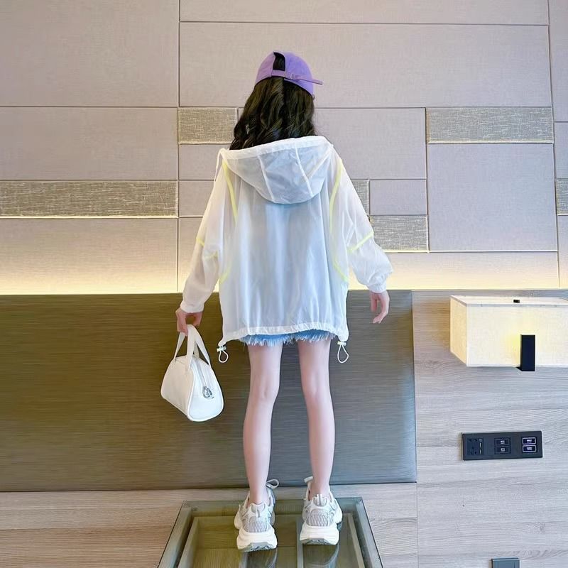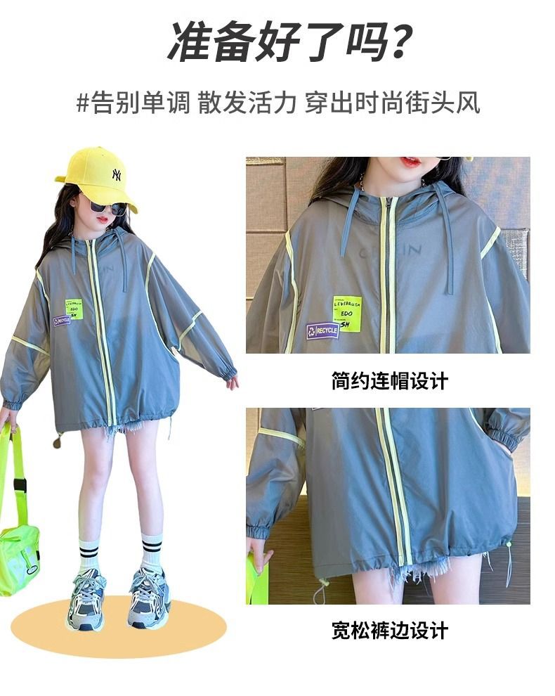 태양 보호 의류 소녀의 여름 얇은 2024 새로운 어린이 통기성 코트 큰 아이들의 느슨한 얼음 실크 통기성 태양 보호 의류스토어 가기